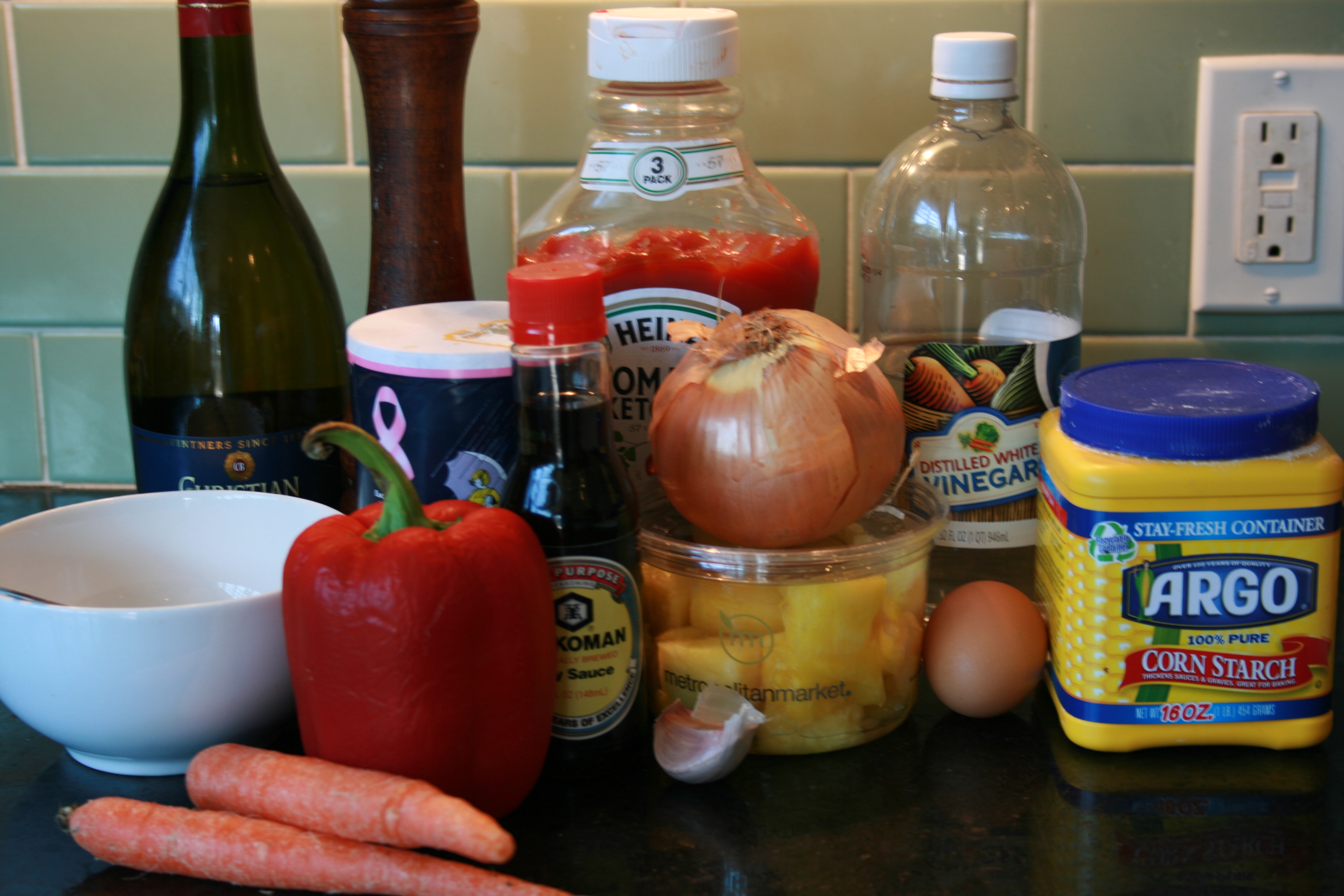 Thinking these recipes look pretty tasty, I had a hankering for a dish I used to eat a lot in my youth- Sweet and Sour Pork. I had chicken at my disposal, so I used that instead of the pork and went with it. If I have it in my fridge, I want to make it work.