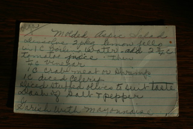 I can tell you one thing for certain. I might not be cooking what was passed down to me, but I’m holding onto these at least for a hearty chuckle from time to time… and incase I ever need a good recipe for Tomato Aspic.