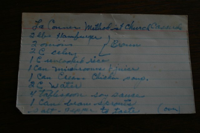 Please note, these were just four out of numerous recipes I would love to share. Yes- three boxes full. It seemed like there was a general rule. If it was dessert- it might be OK. If it was savory, watch out. One did show promise labeled, “very good Chi-Chi” May be I’ll bring that to our next meeting.