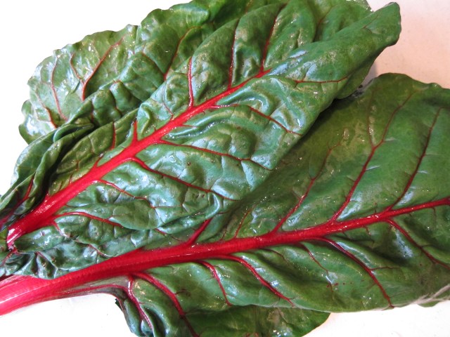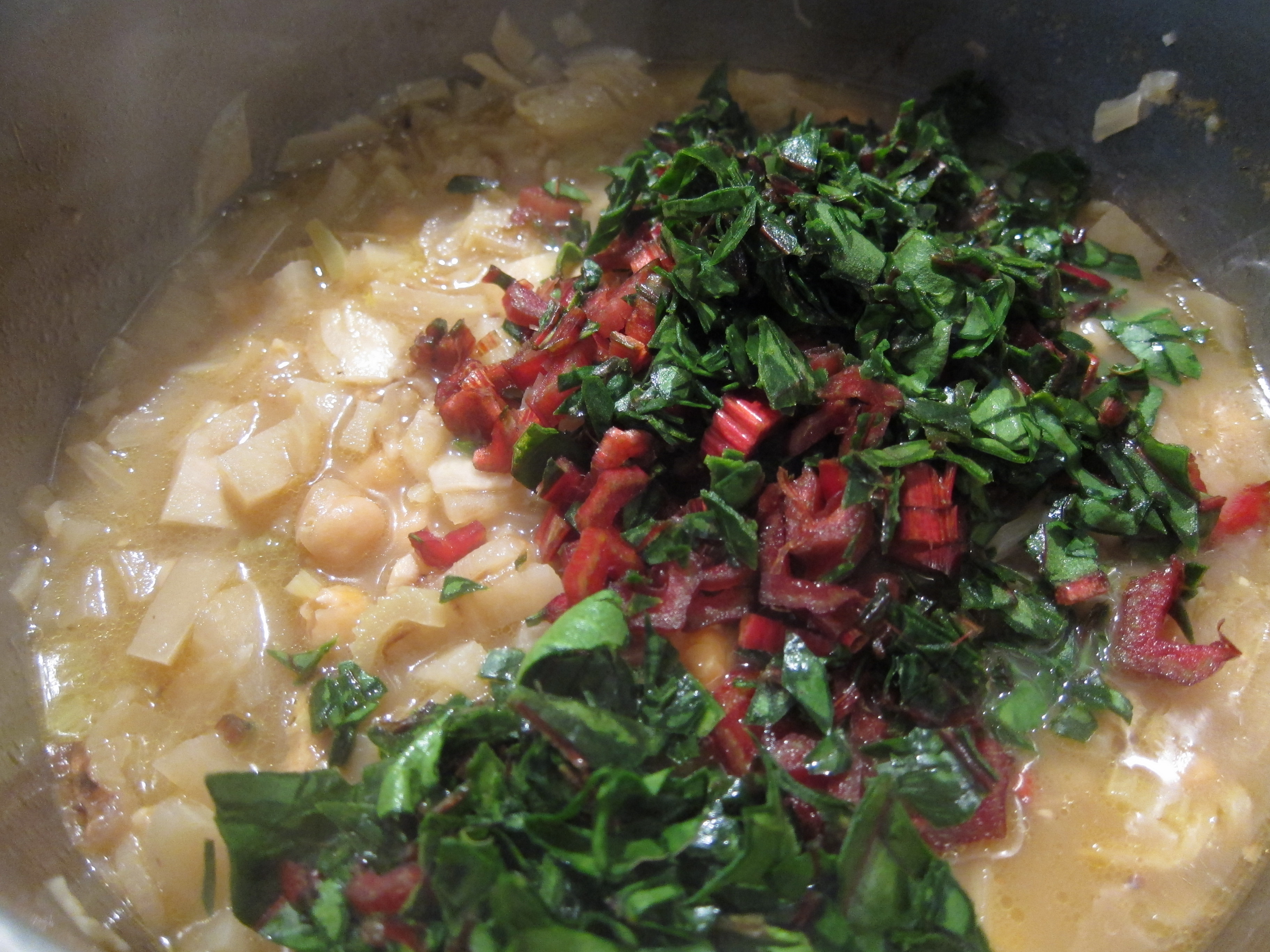 When ready to eat, bring to a simmer and add half cup chard leaves and half cup chard stems, both chopped.  Incidentally, have you seen a better looking leaf?
