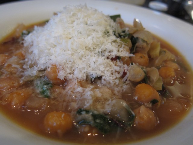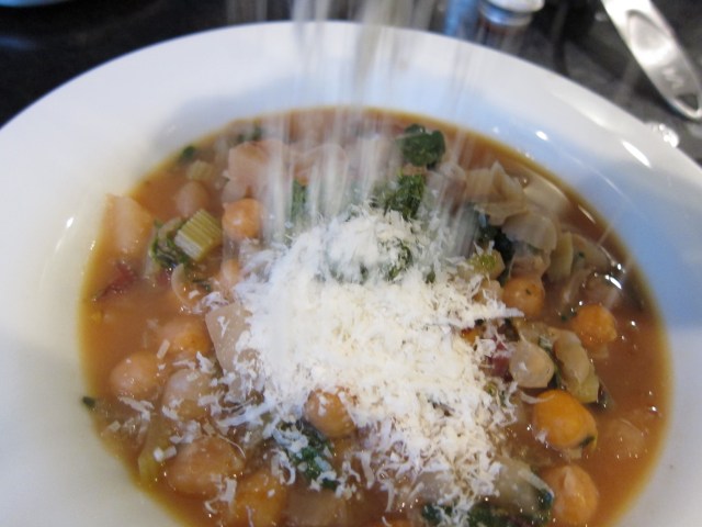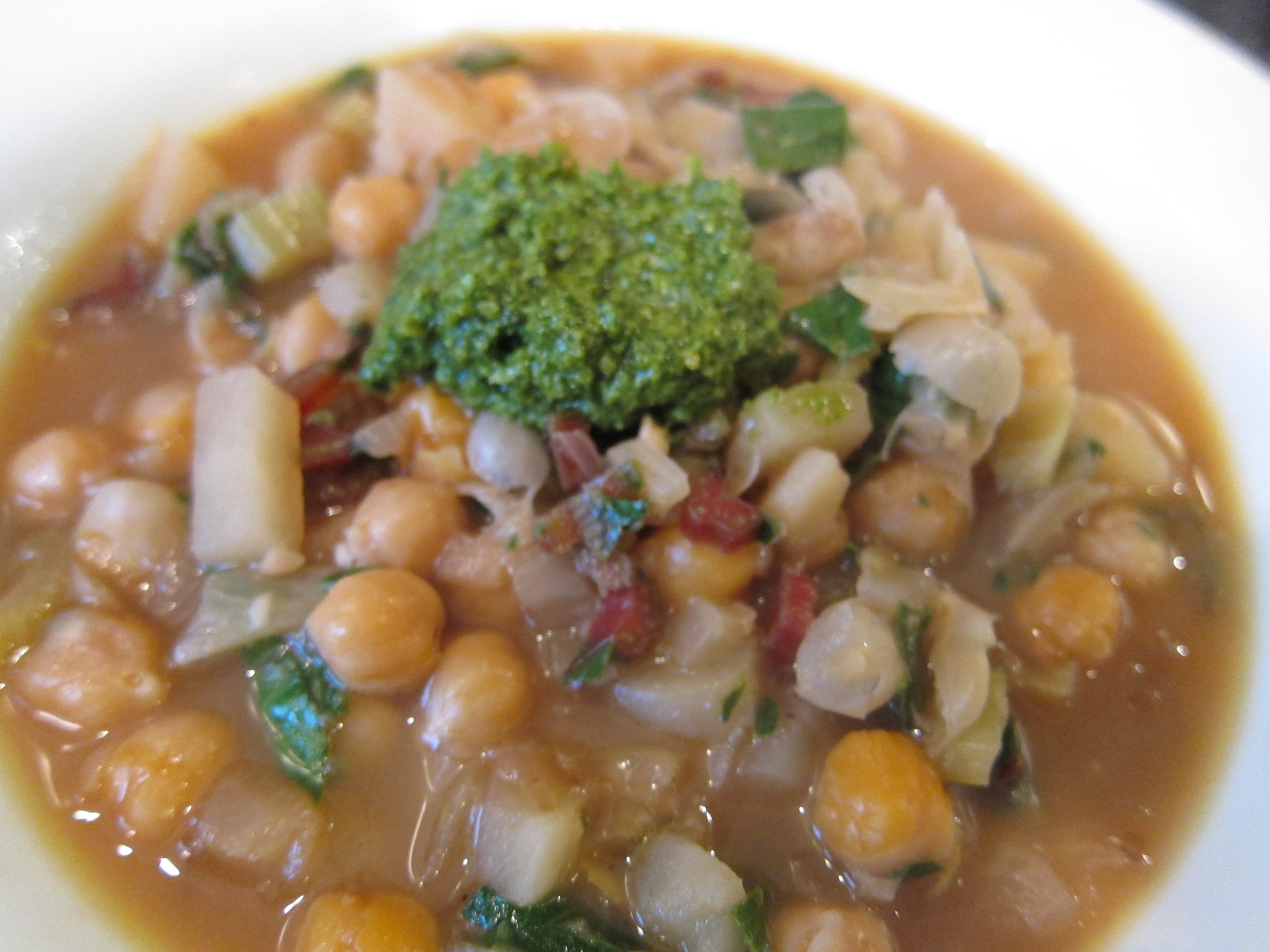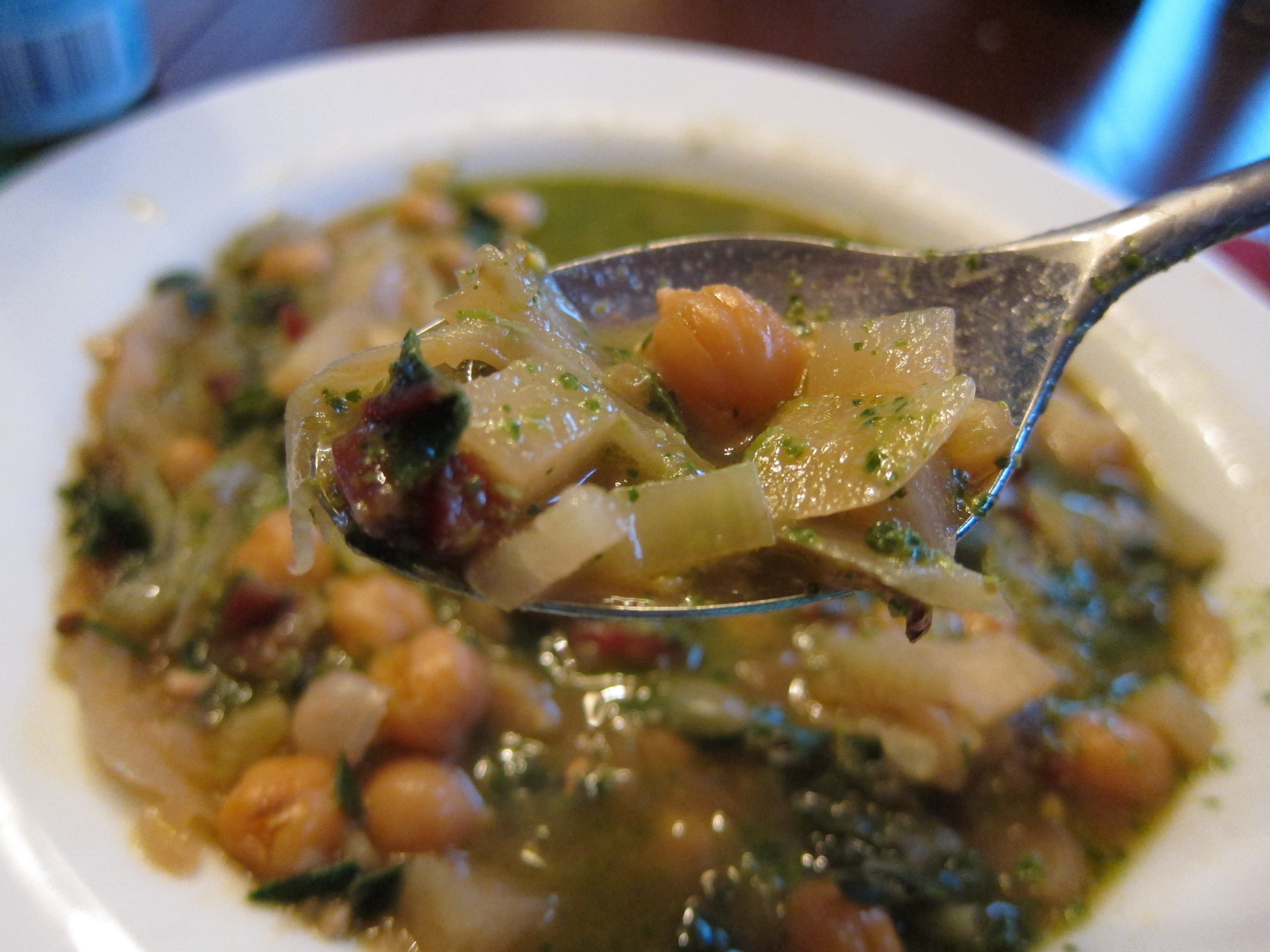 Doesn’t that sound divine?  So much more exotic than “Vegetable Minestrone with Pesto” but that is the rough translation.