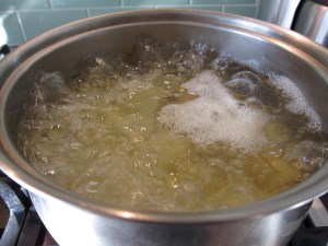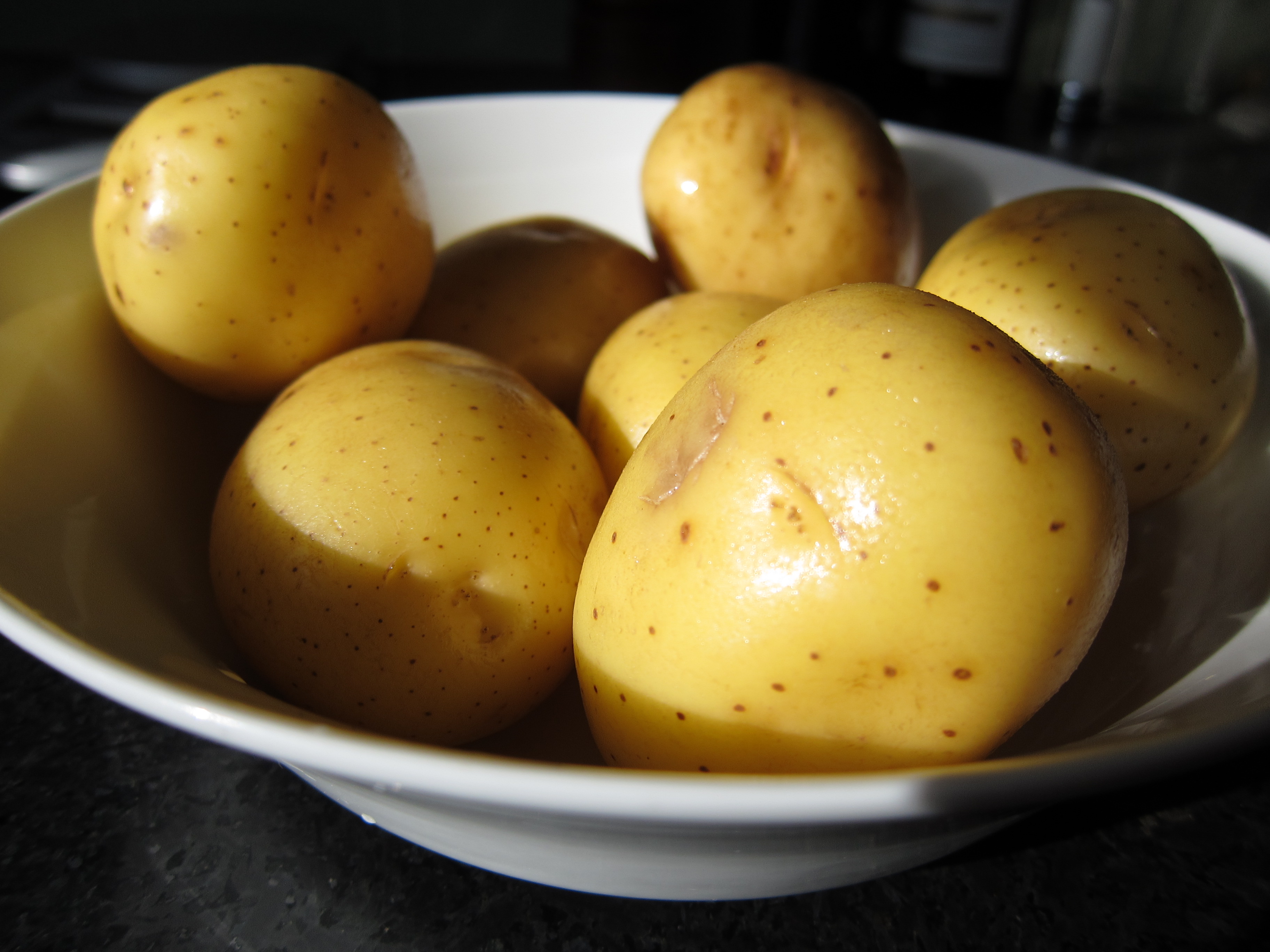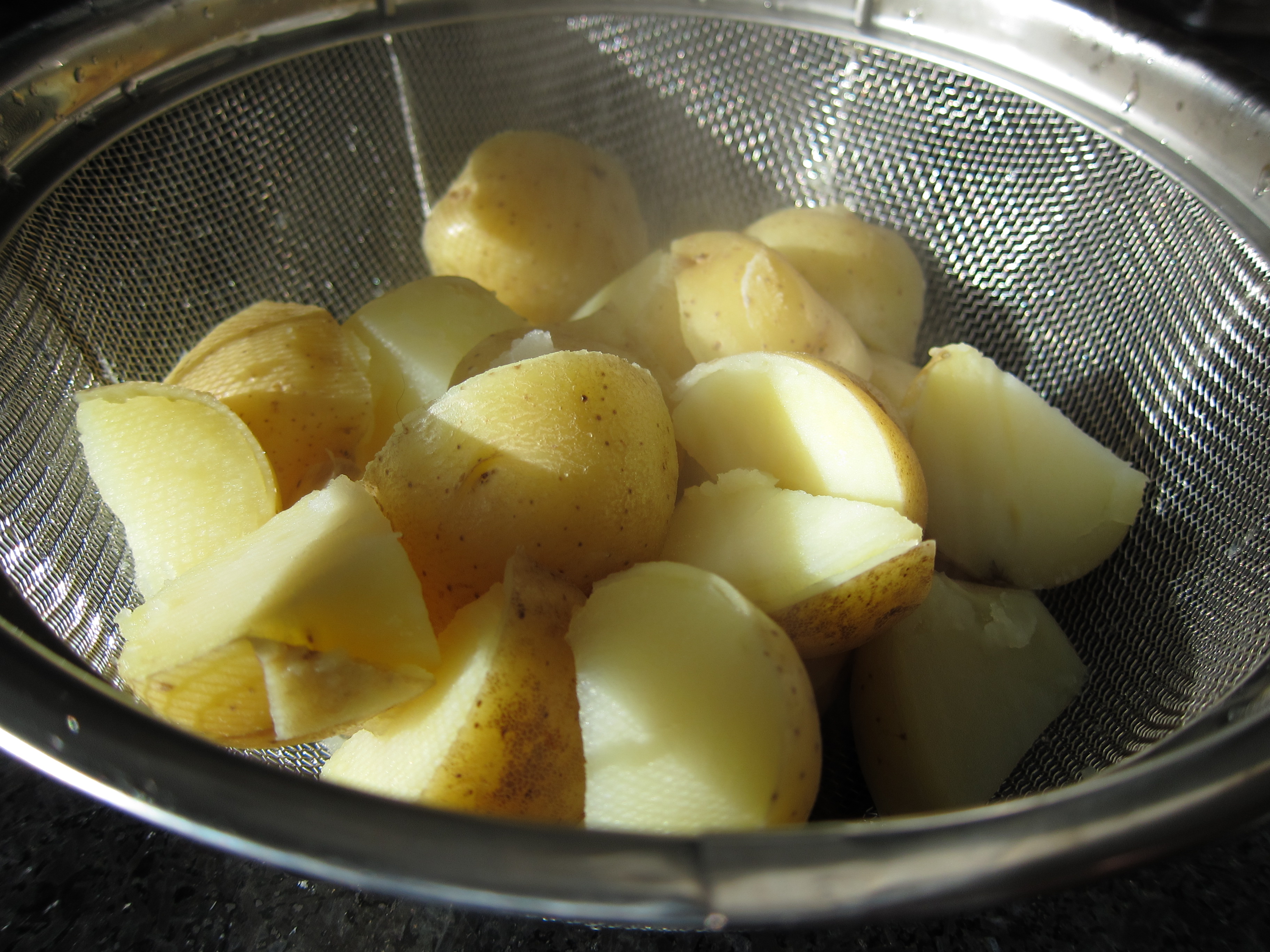 At any rate, boil some yukon gold potatoes for about 15 minutes in some salted water.