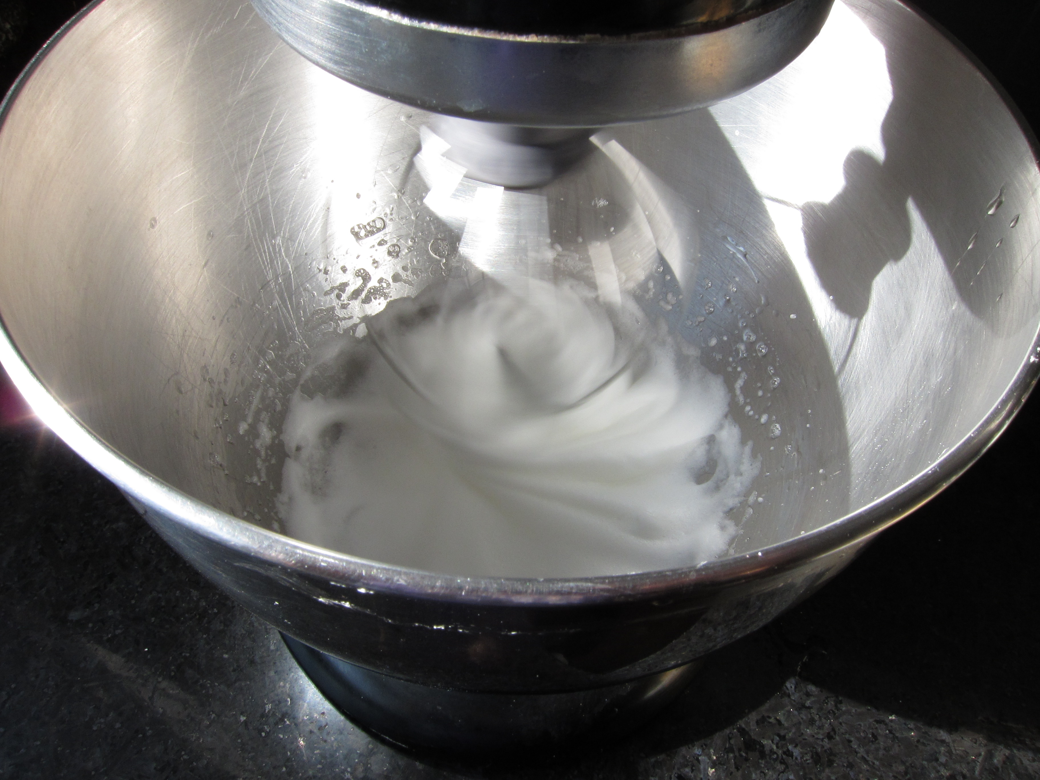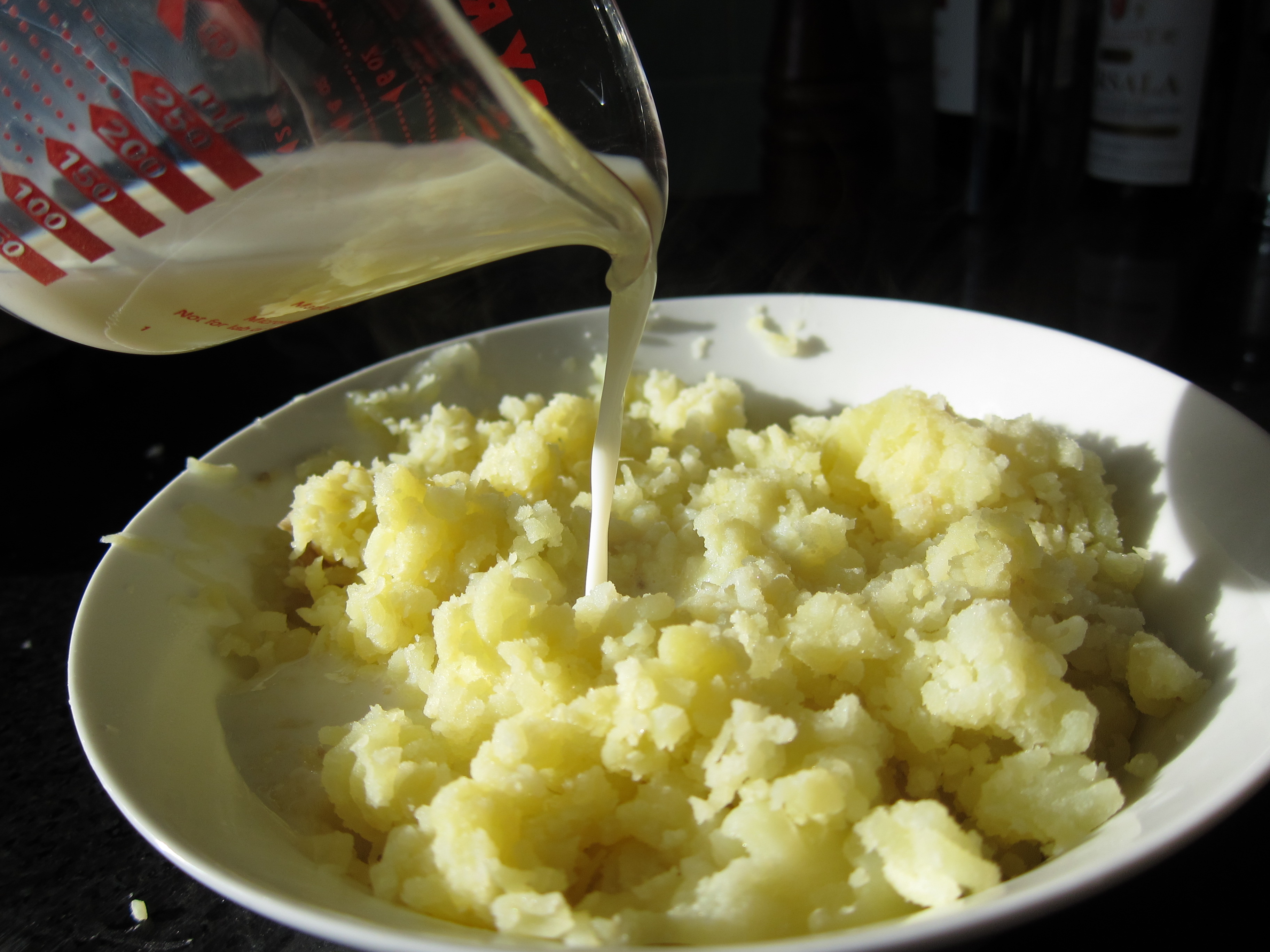Next, separate an egg, whip the whites into peaks and fold into the potatoes. Take out your smoked mozzarella and cut it into small pieces. Revel in the fact that there is actual sunlight coming through the window.