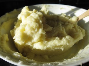 Then realize- whoops, I was supposed to peel them first. Crap. Then kiss your potato ricer and apologize for all of the bad things you say about it (takes up too much space) and thank it for doing the peeling for you.