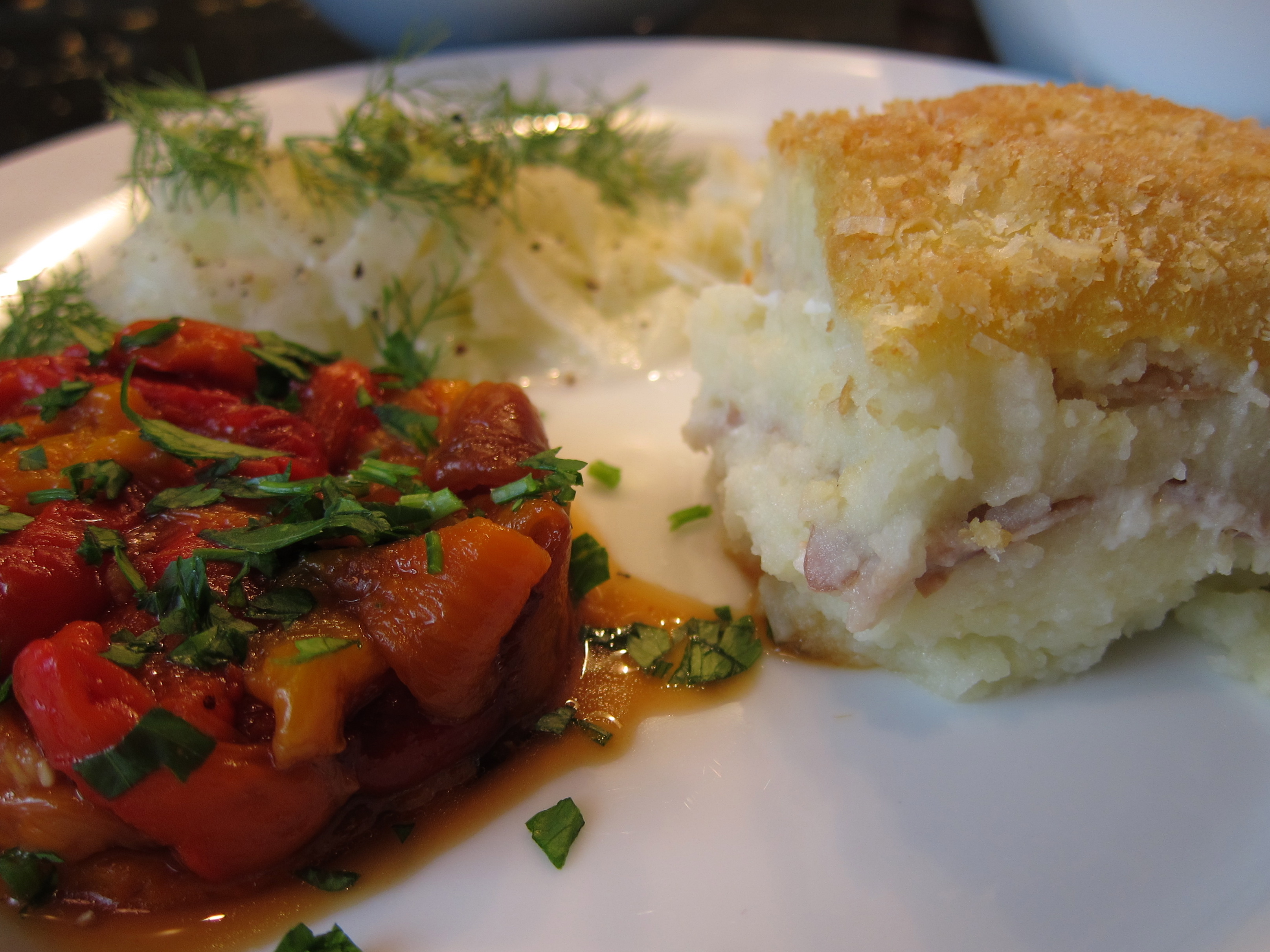 Again, this dish was quite tasty- did not however maintain the layers as I had hoped. I figured it wouldn’t, but a girl can dream. The photos in the book look so stunning- but I’m pretty sure it had to have been cold when they cut the gooey potato. You can imagine.