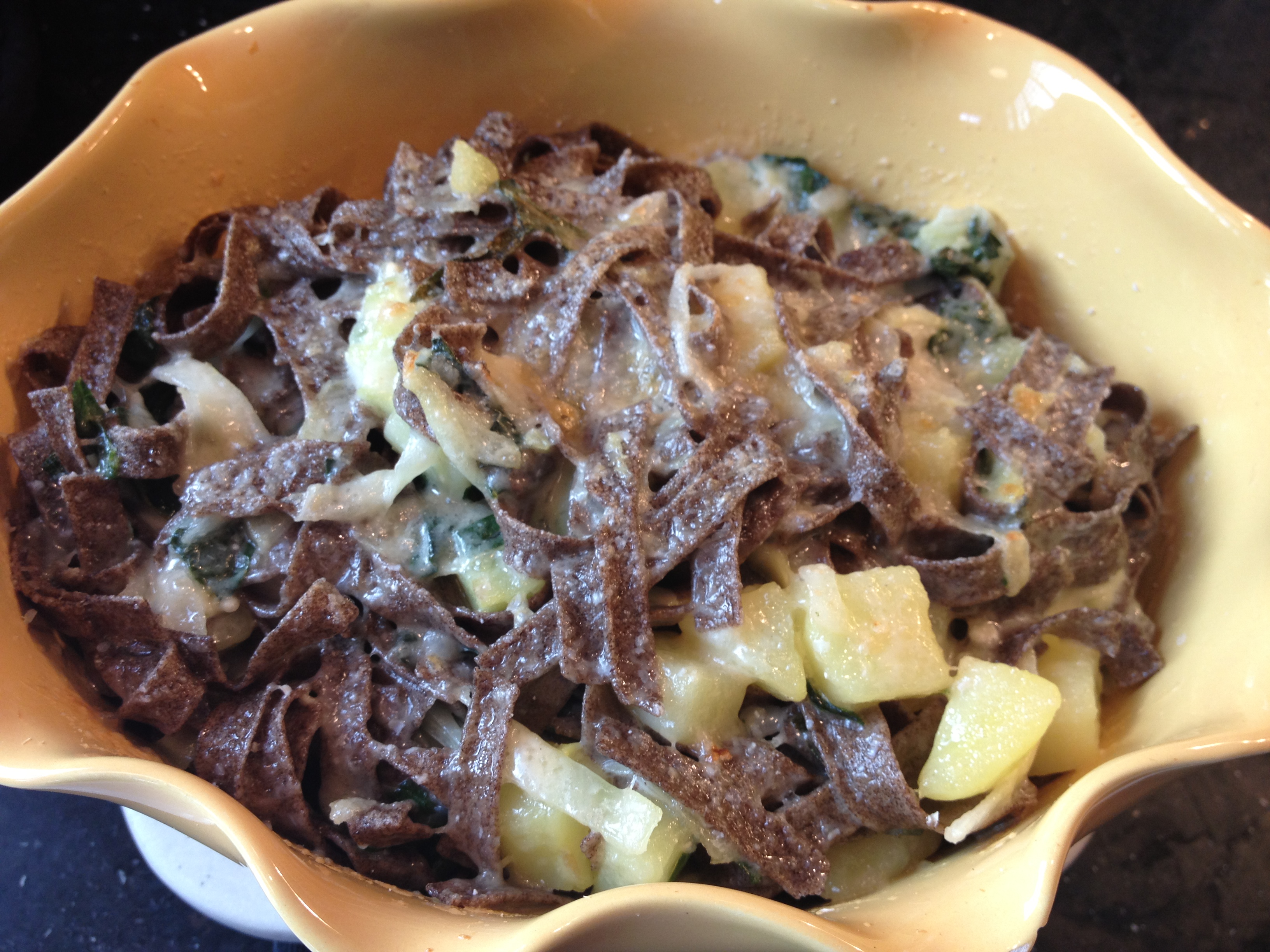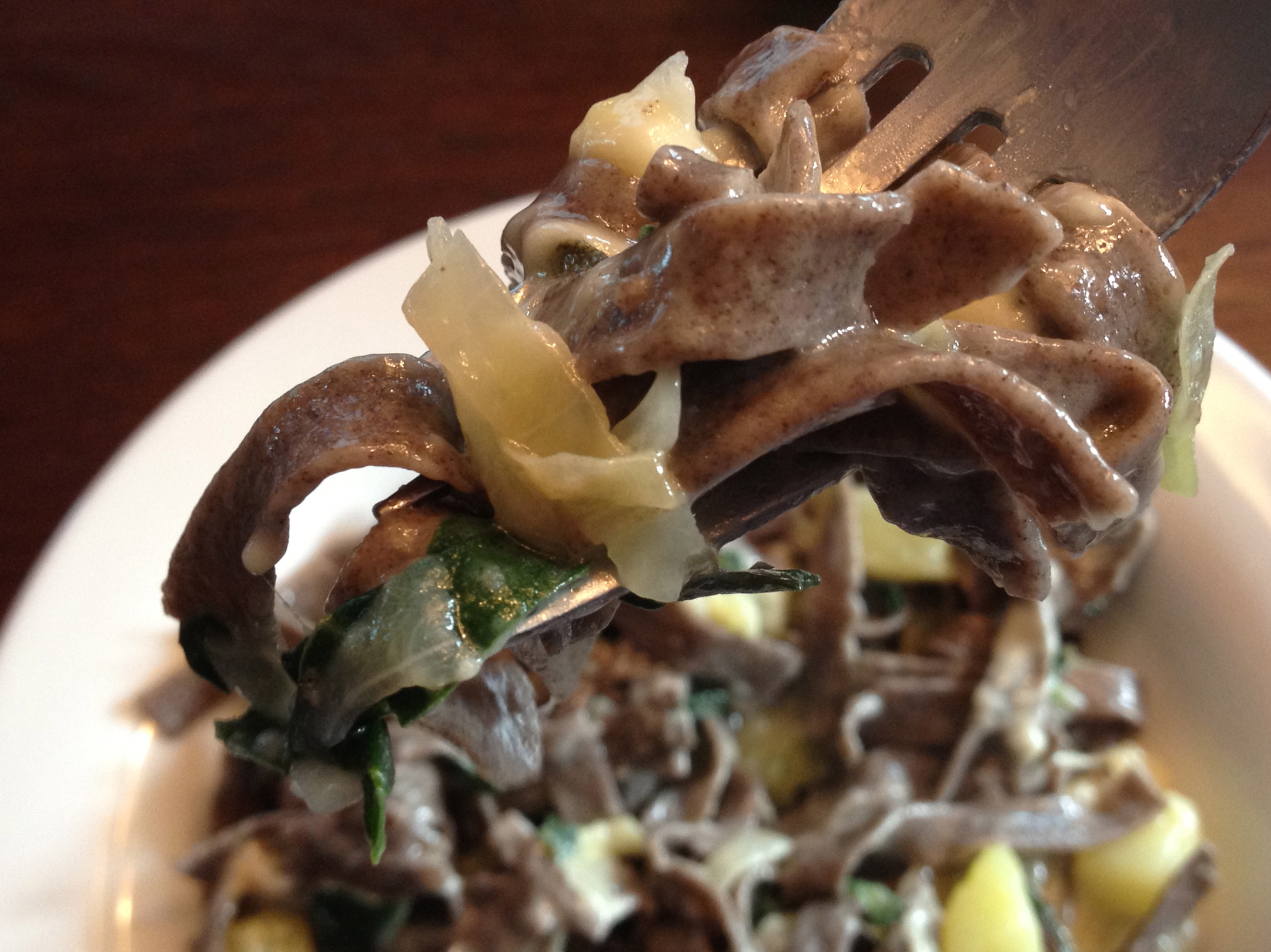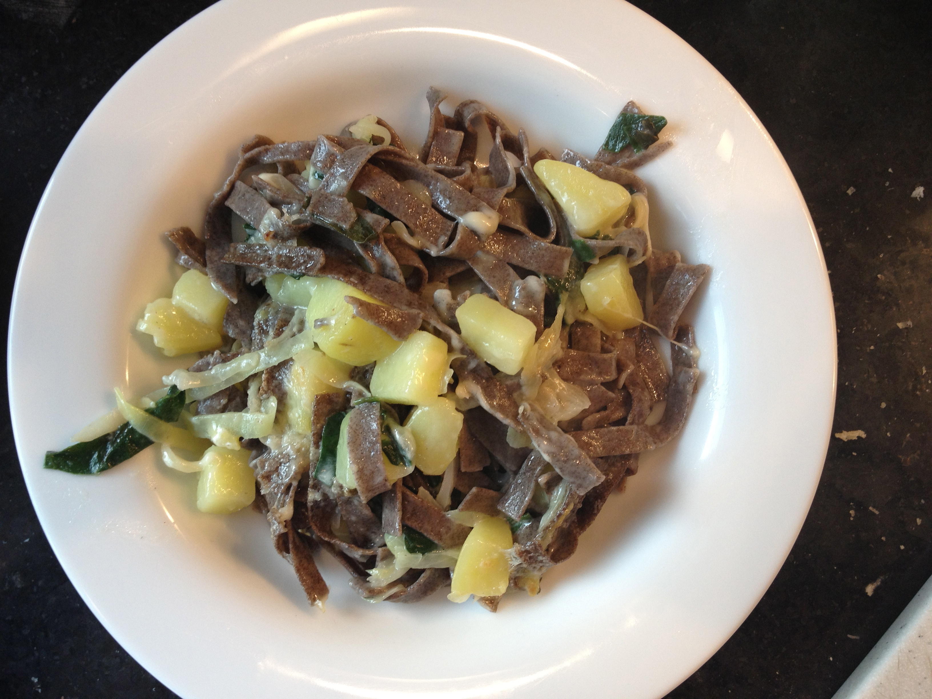 mmm… not sure what the translation is here. I can tell you it’s a big mess of buckwheat noodles, cheese, and leafy greens.