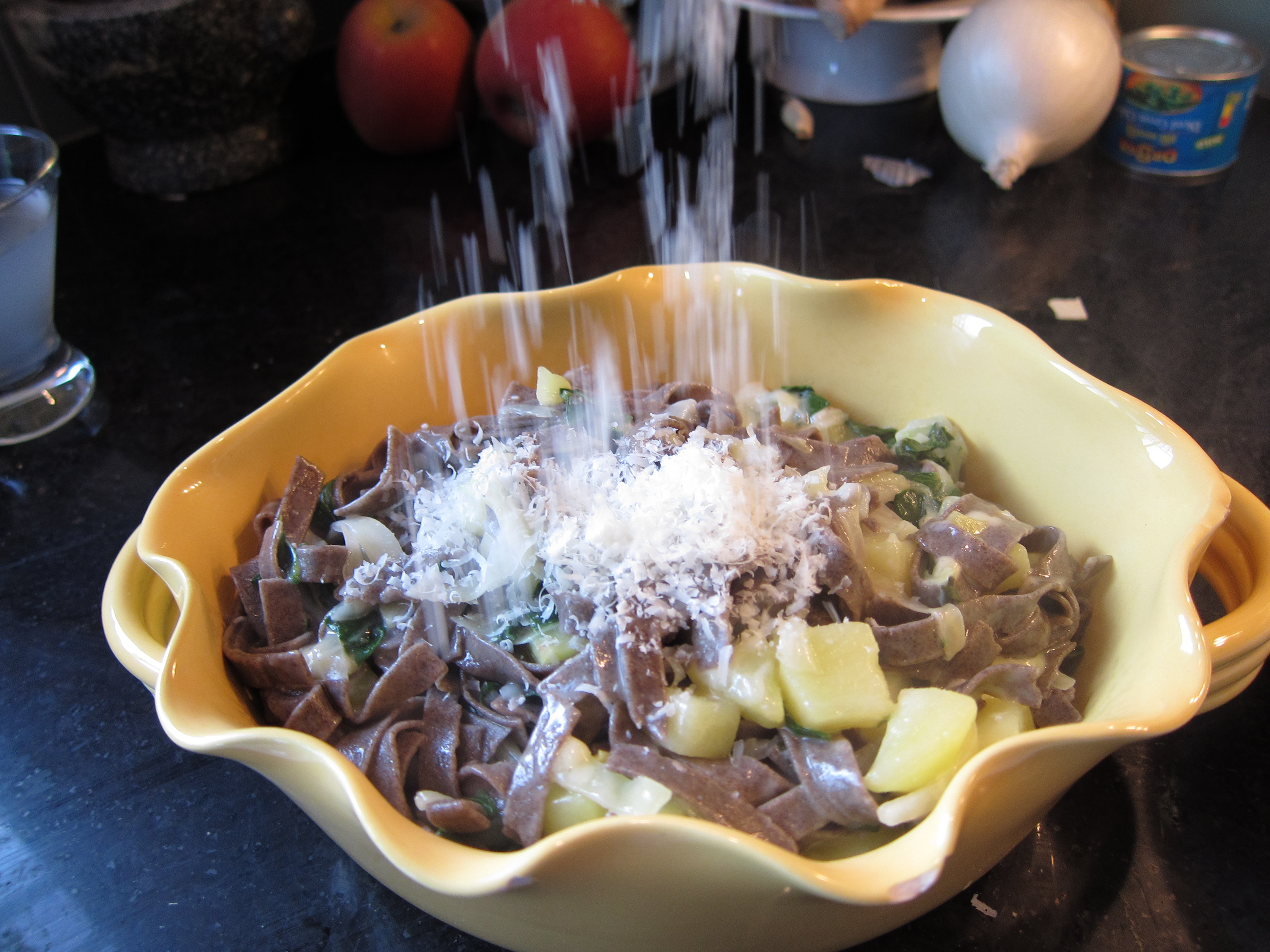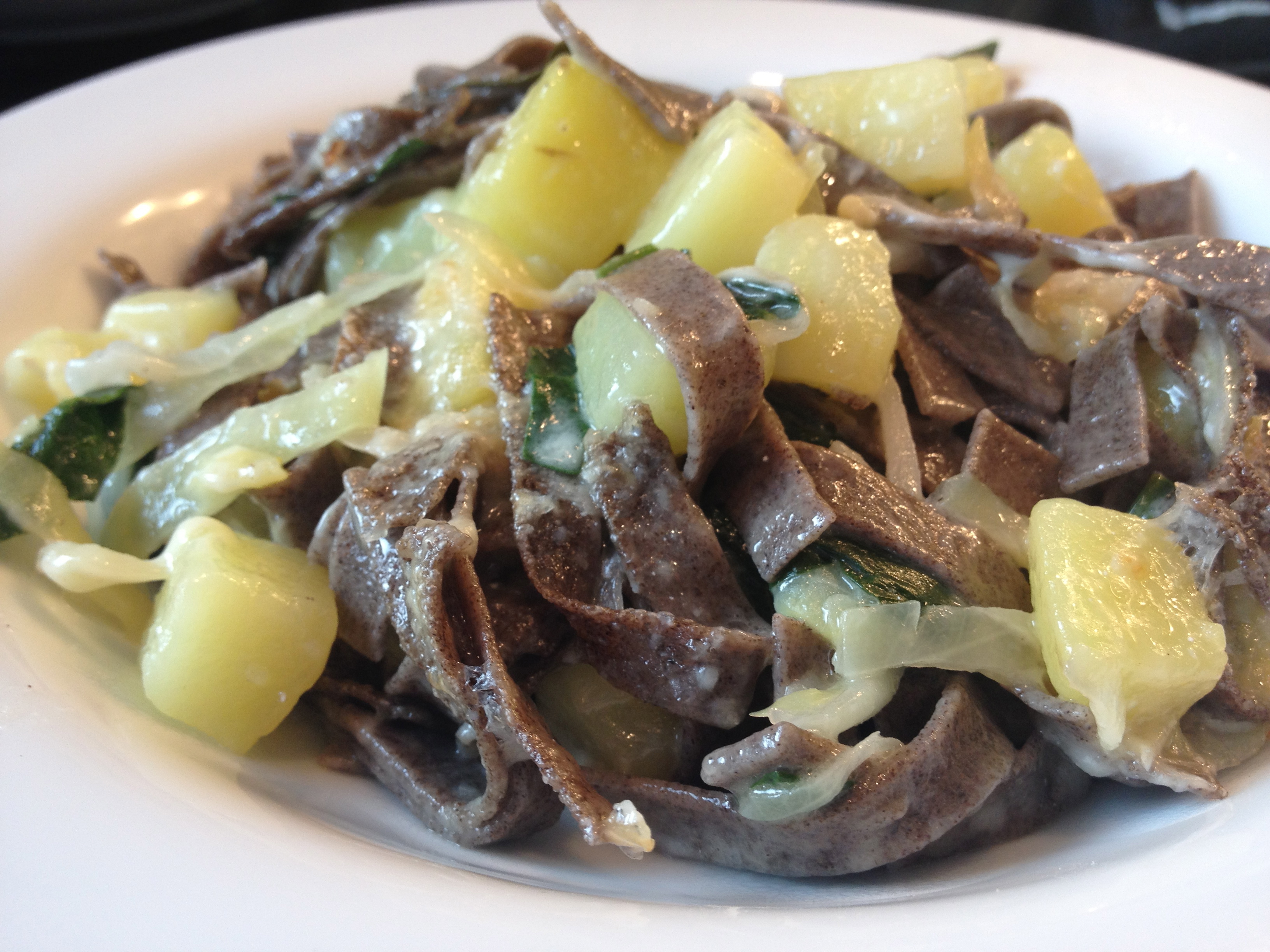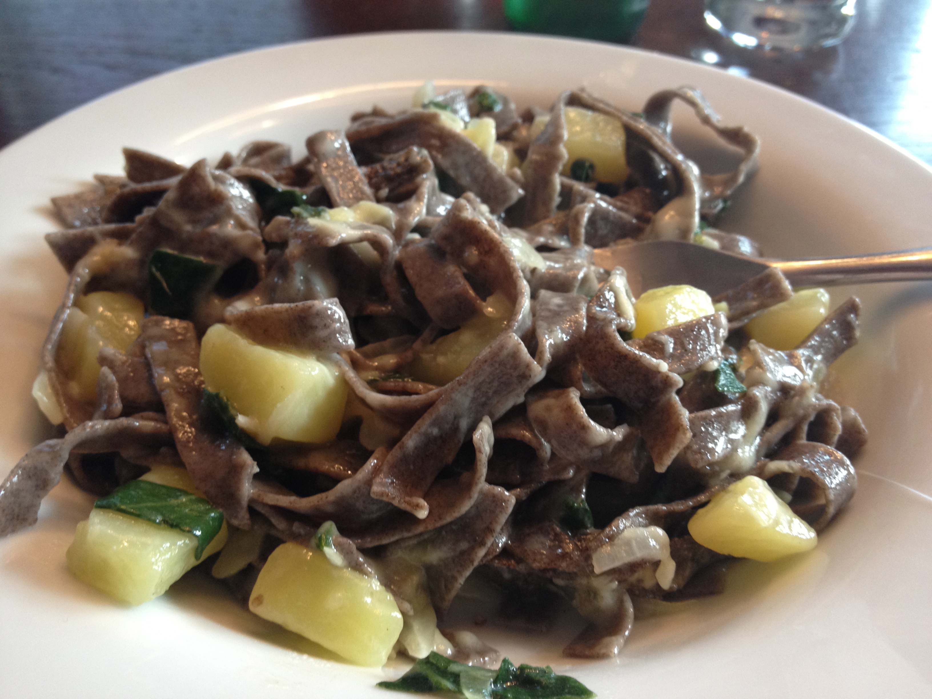 mmm… not sure what the translation is here. I can tell you it’s a big mess of buckwheat noodles, cheese, and leafy greens.