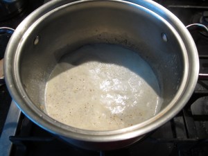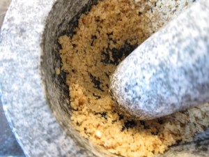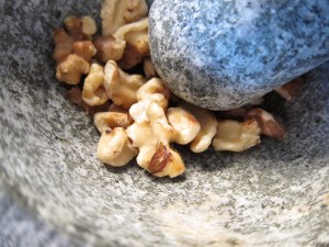 Combine the walnuts with some cream and garlic. Simmer until reduced by half.