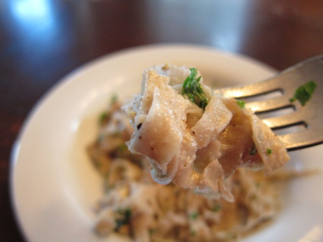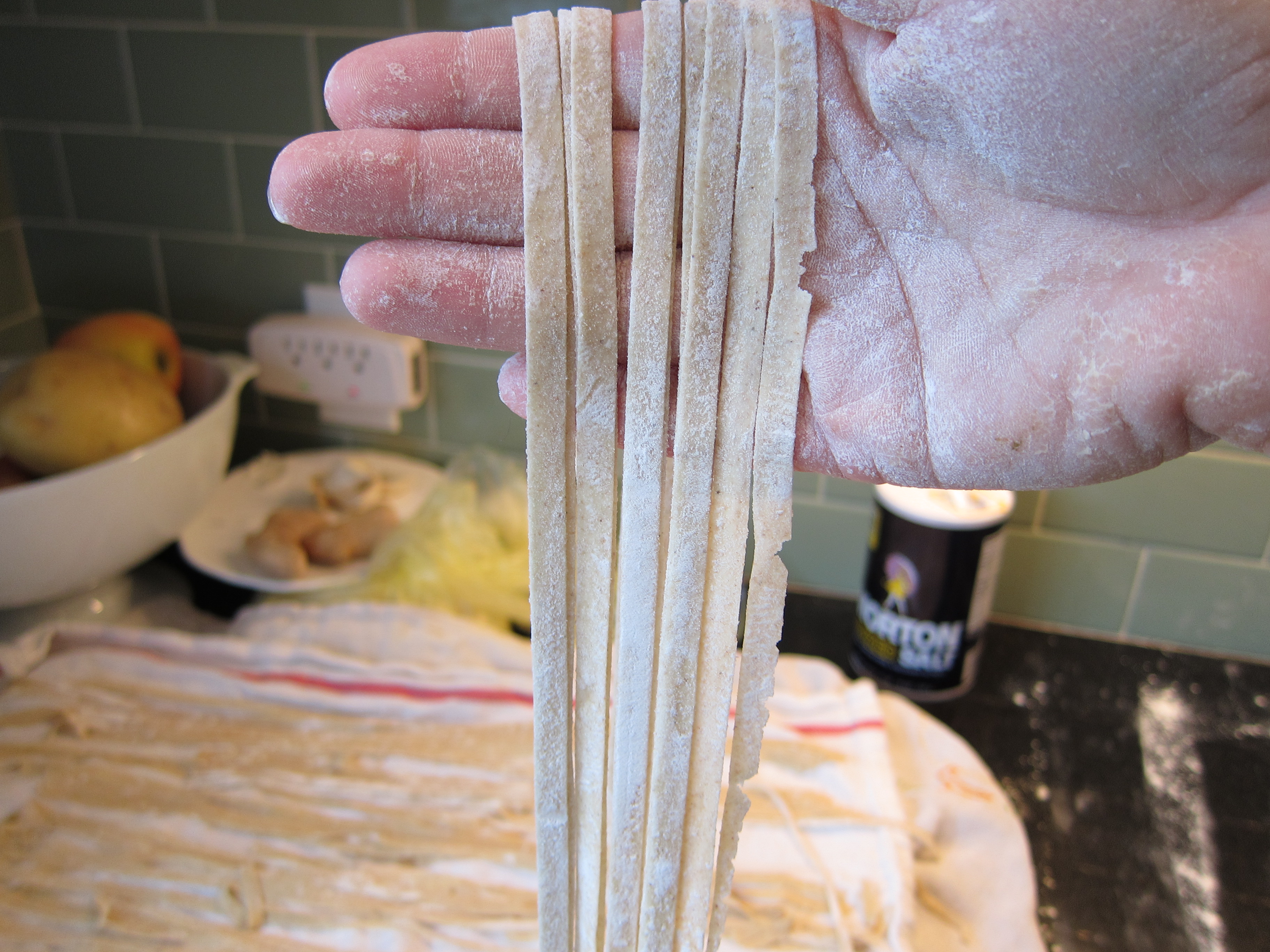 First off, the noodles were the BEST I have ever made. Mark actually didn’t believe me when I said that I made them. The best part- only three ingredients. Half Semolina Flour and half Farro Flour. I got the Farro flour at DeLaurenti.