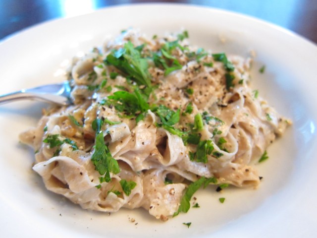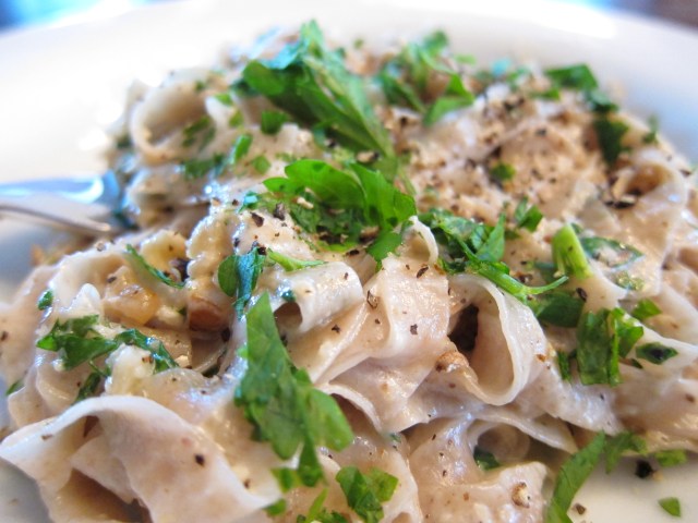 Sounds unassuming… right? A good way of using up some walnuts that I had, some cream that may have otherwise gone to waste, and some parsley from the garden….(the only thing currently growing) Let me tell you- this was much more than a way to use up leftovers.