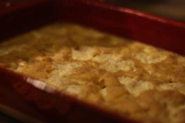 Makaronilaatikko is a Finnish dish. Traditionally, in Finland, it is a savory dish and is made with minced meat and served with lots of ketchup on top. Erik’s grandmother liked to make it as a sweet dish though, with the sugar and cardamom in it. She would serve it as a side dish to ham, etc. during holidays.
