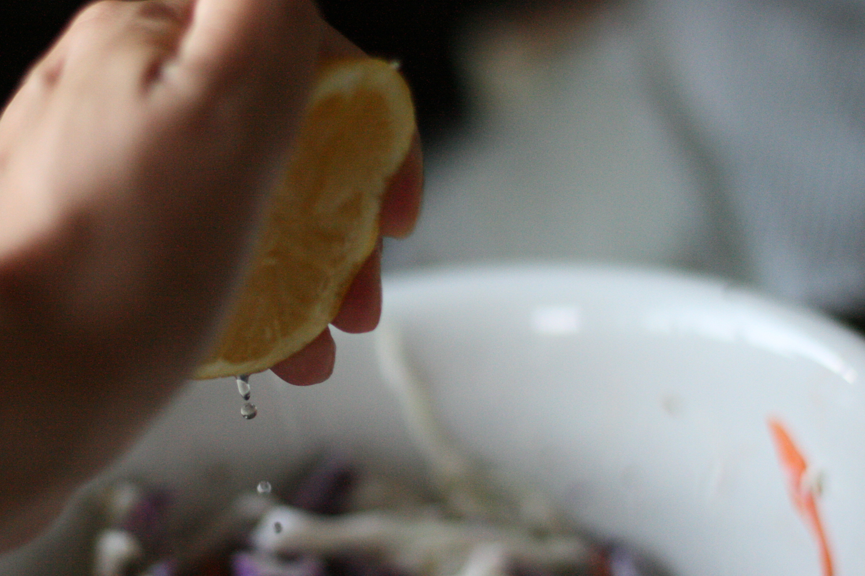 Top it off with a little squeezed lemon. Note I had a cut on my finger, and this process was pure agony.