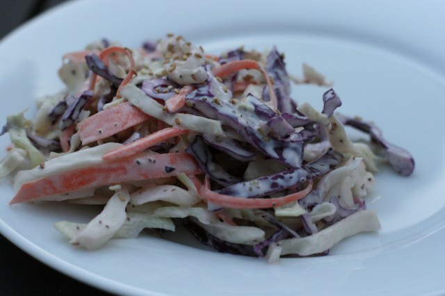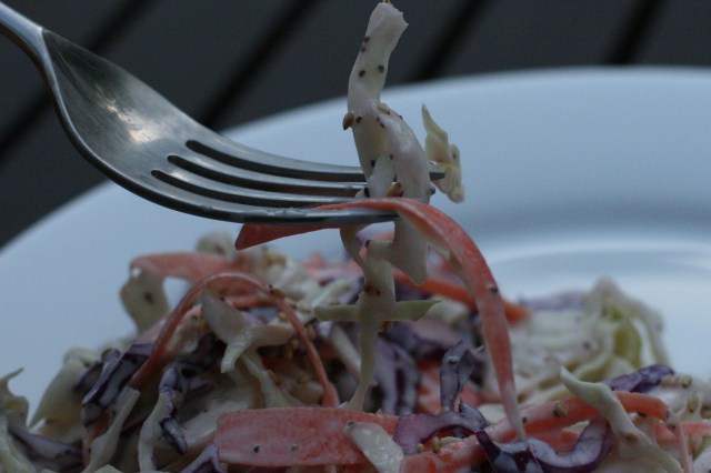 I’m a bit behind in postings. This we actually made at the same time as the Corn on the cob with lime salt. Another great summer time dish that seems to go with everything is Coleslaw.