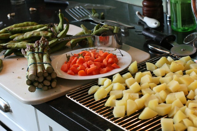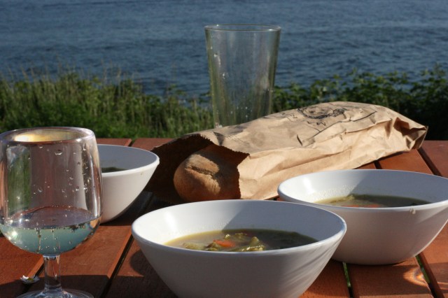 We had a cheese course (semi failed, but still delicious) and I decided that since I didn’t know it was going to be 74 degrees, I would bring a spring soup- in case it got nippy… which I didn’t. No bother…