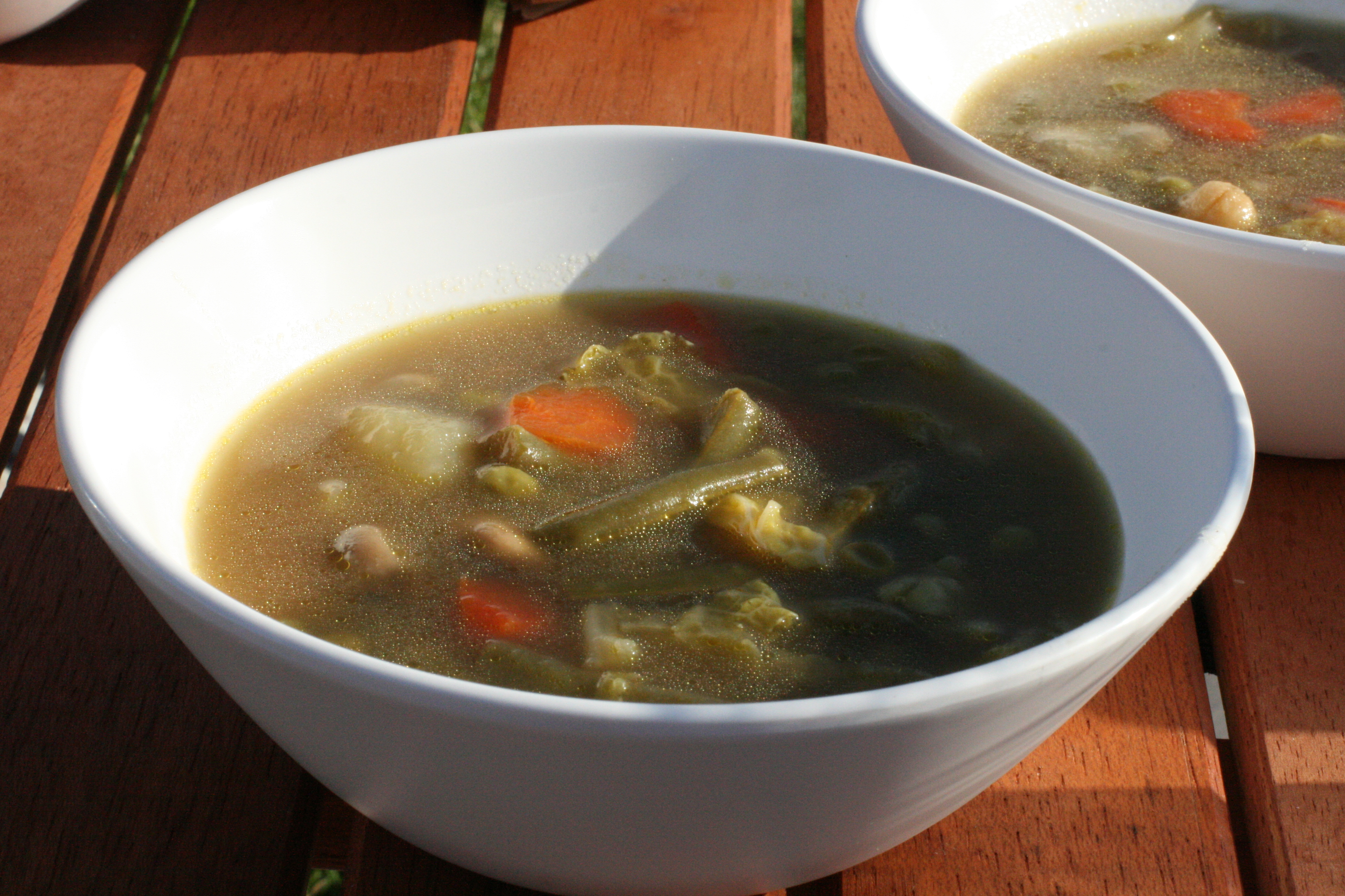 My clear and lovely broth was muddled and my lovely green vegetables look not so lovely. BUT it was still delicious and that is most of what counts.