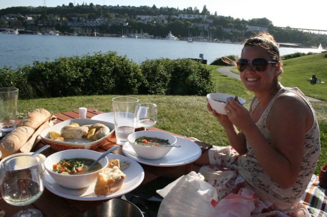 Tuesday nights in the summer, we picnic at Gas Works Park. For the first picnic of the year, we started things off right.