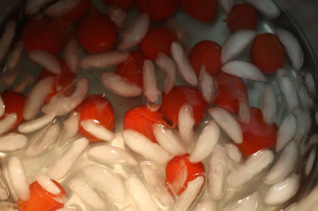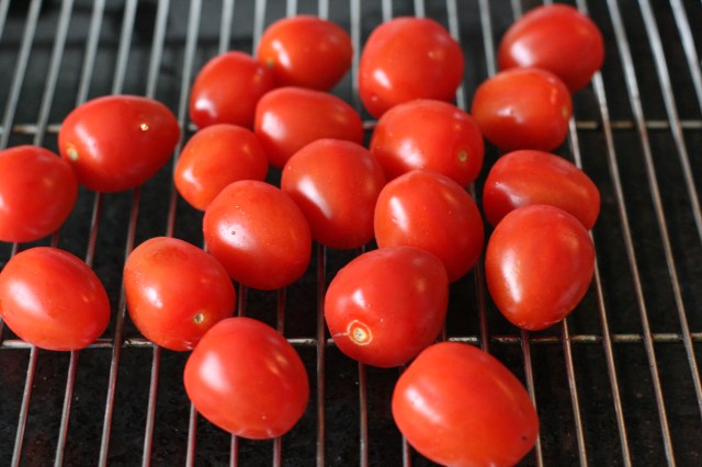 I bought strawberry tomatoes at the market because they said not to bother with the plum tomatoes. (When I asked how they were, I actually saw a scrunchy nose. Not a good sign.)