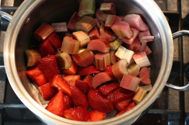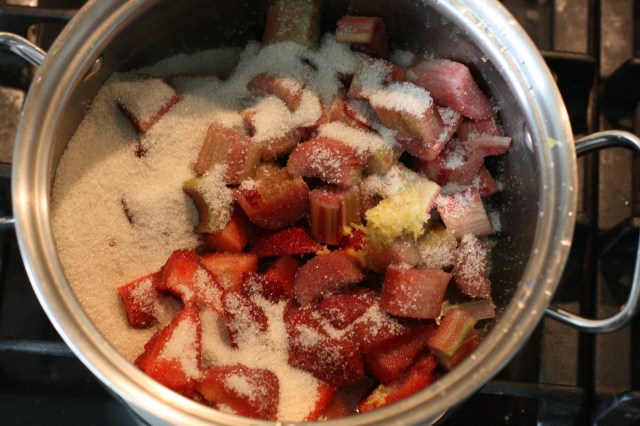 Basically rhubarb and Strawberries in a pot with a bit of lemon zest.