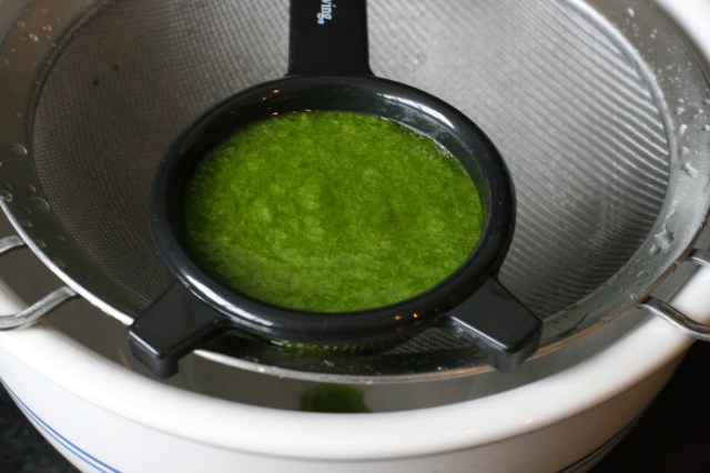 Next, make Chive Oil.  (puree chives in oil, let it steep, then strain.)