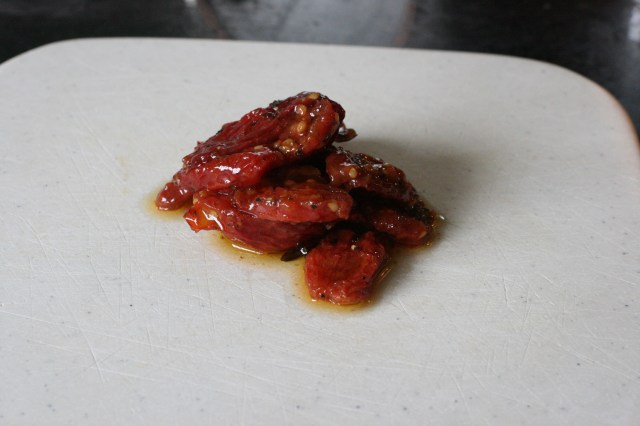 Then make the tartare with the confit, some balsamic, some shallot chopped up.