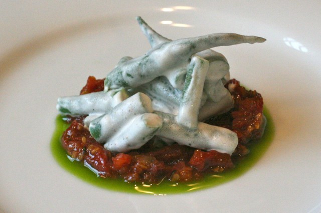 2 Responses to Salad of Hericots Verts, Tomato Tartare, and Chive Oil