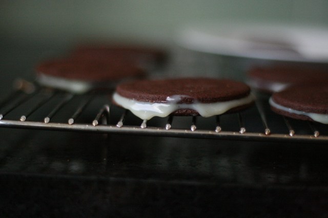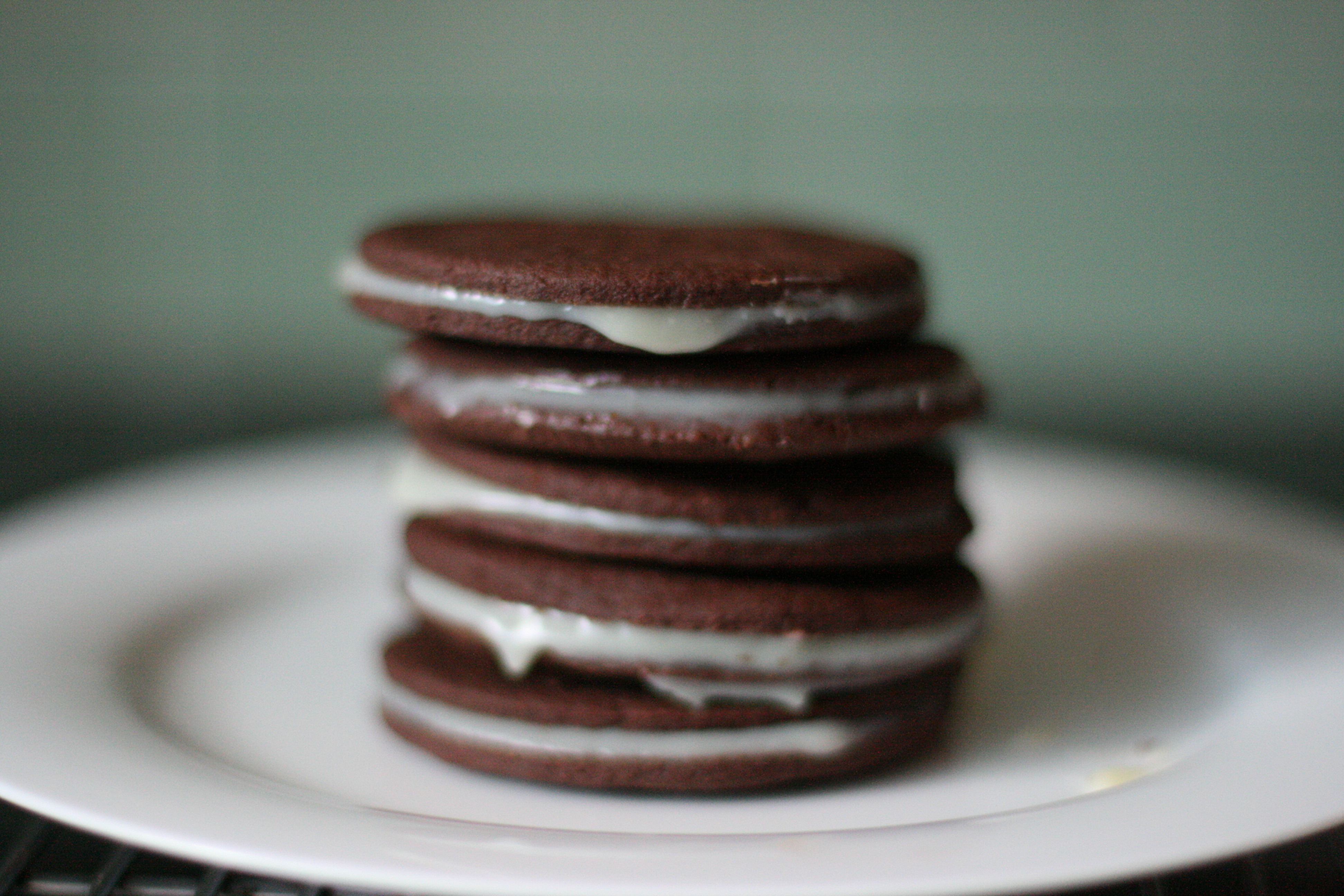 I had the pleasure of visiting the Bouchon Bakery when we were in california wine country. I’m pretty sure I gained about five pounds in one day, because I distinctly remember sampling (by sampling I mean eating) a chocolate croissant, some other flaky pastry, the nutter butter cookie and the TKO. I made the Nutter Butter last summer, but thought I really owed it to Mason to try my hand at the Oreo.