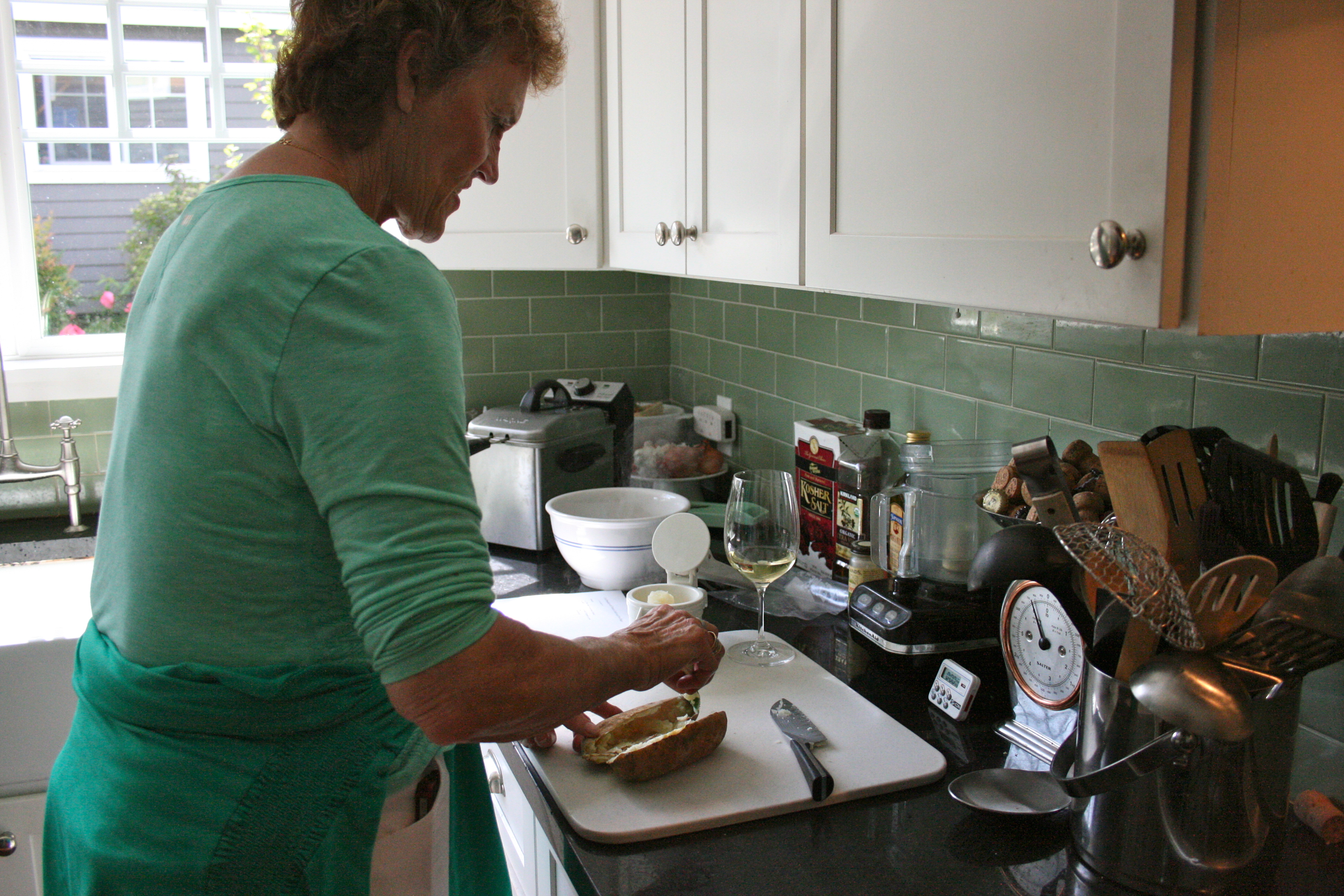 I had some kitchen helpers for an evening of small plates. This was our start. Meet cousin Geri. She was sport enough to take on the final prep of what we affectionally called, “cod balls.”