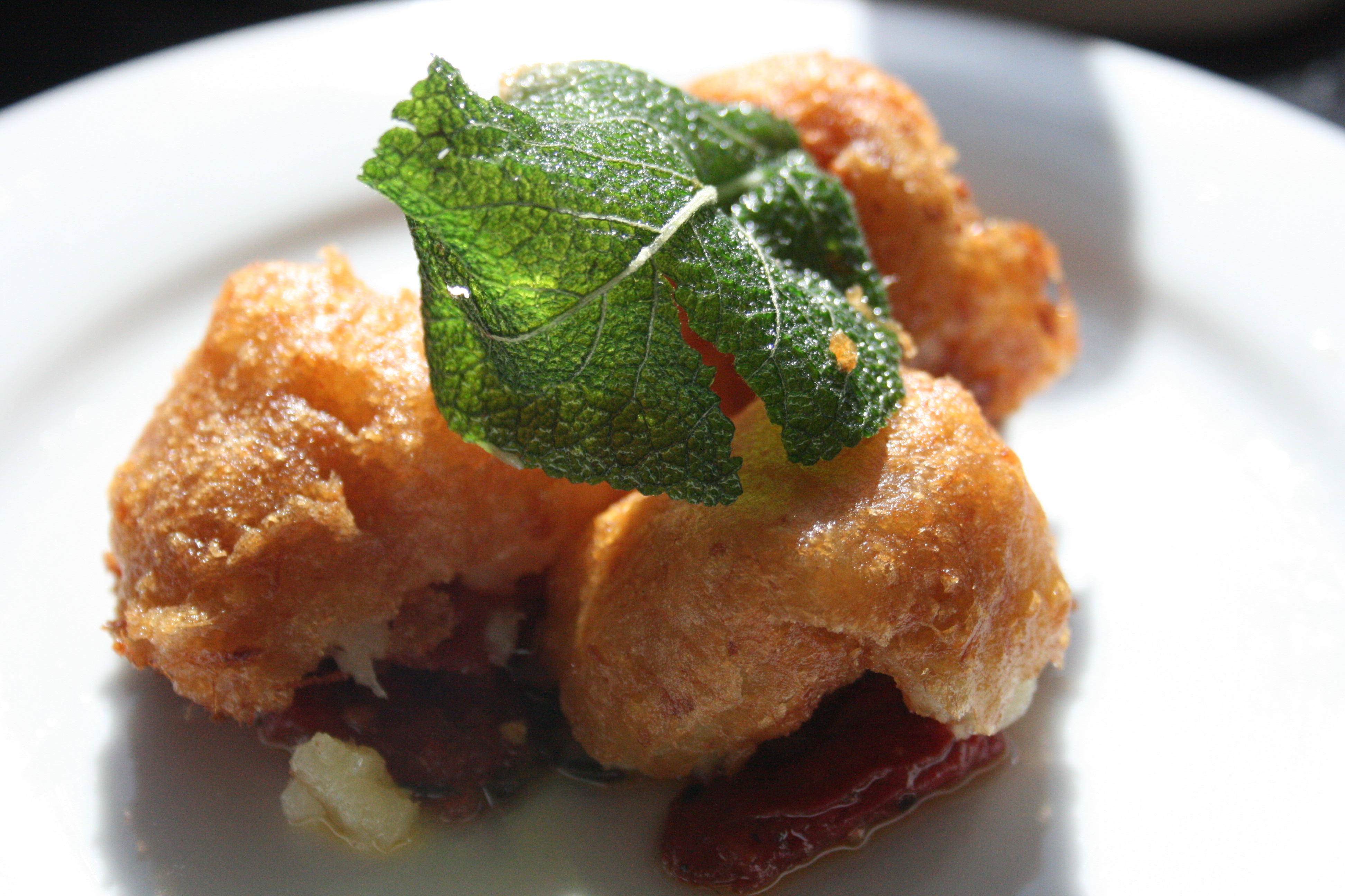 Beignets de Brandade de Morue au Confit de Tomatoes et Sauge Frite