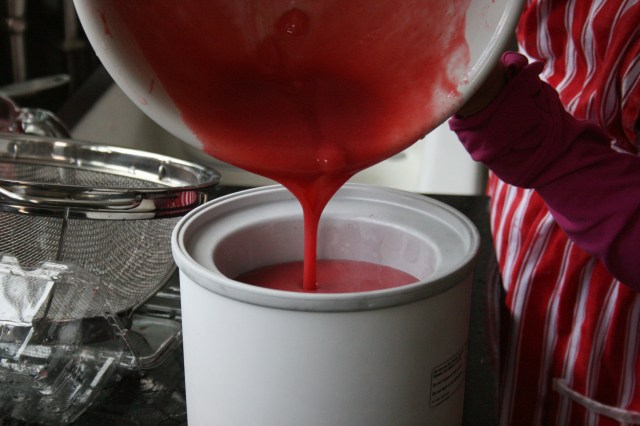 Mix with sugar and honey and into the ice-cream maker it goes!