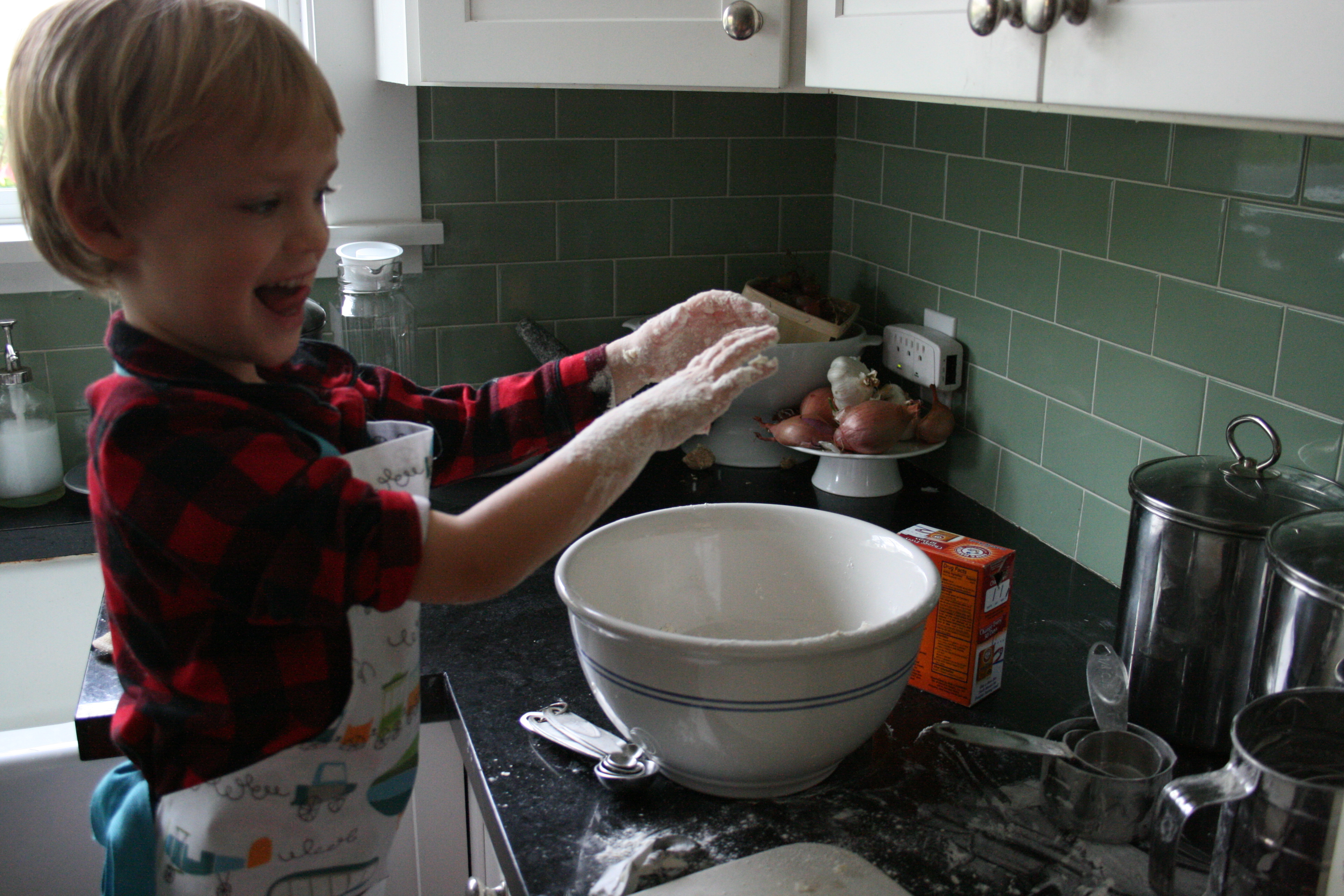 This recipe can be found in The French Laundry Cookbook by Thomas Keller.  We started with the biscuits and I was fortunate to have a helper who wasn’t afraid to get his hands dirty.