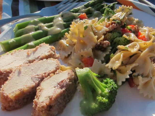 Everything was GREAT for packing up- eaten at room temperature, and delicious. (tarragon mustard was in the cooler) everything else- in a bag. It was great. AND it looked nice on a plate which is always a bonus.