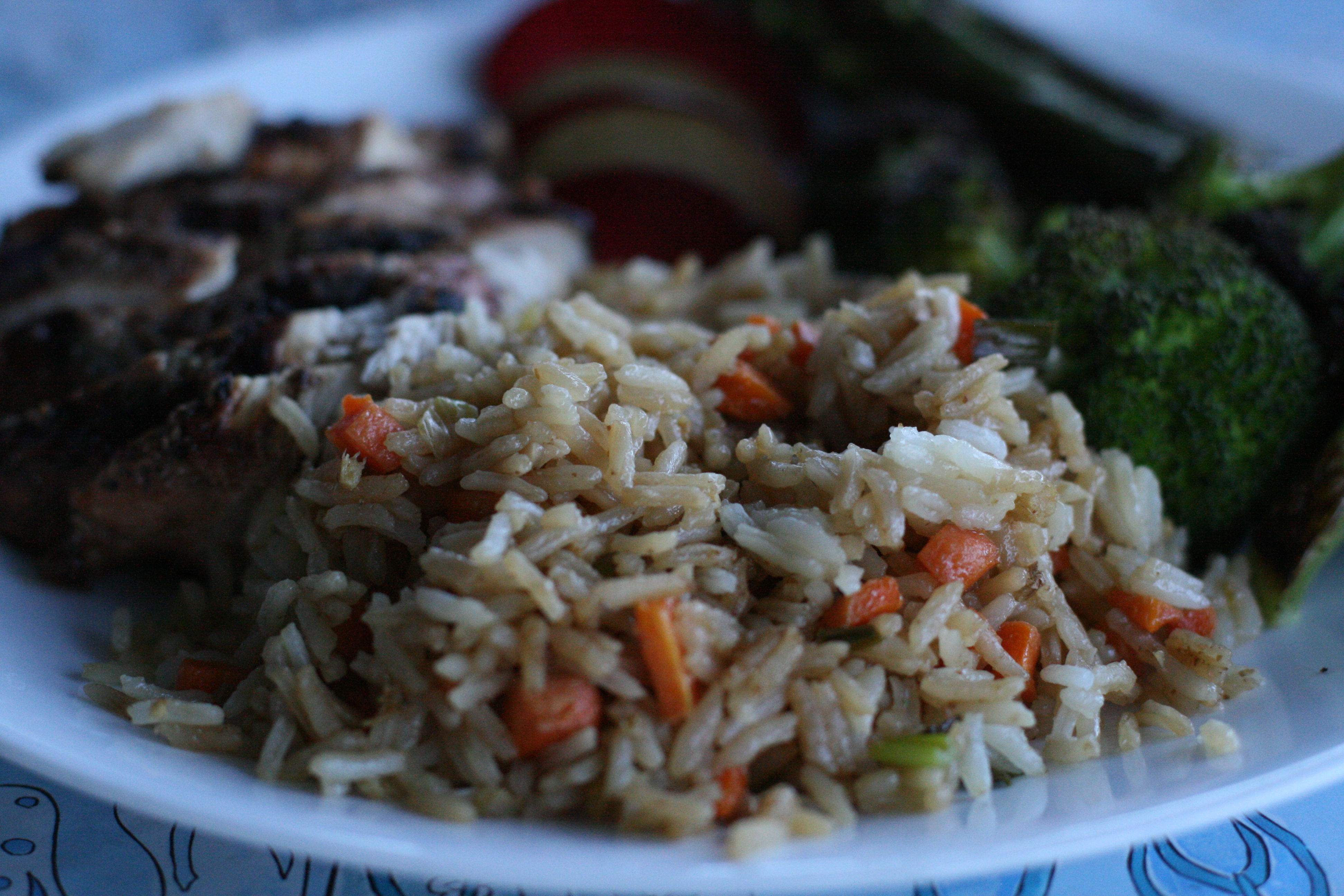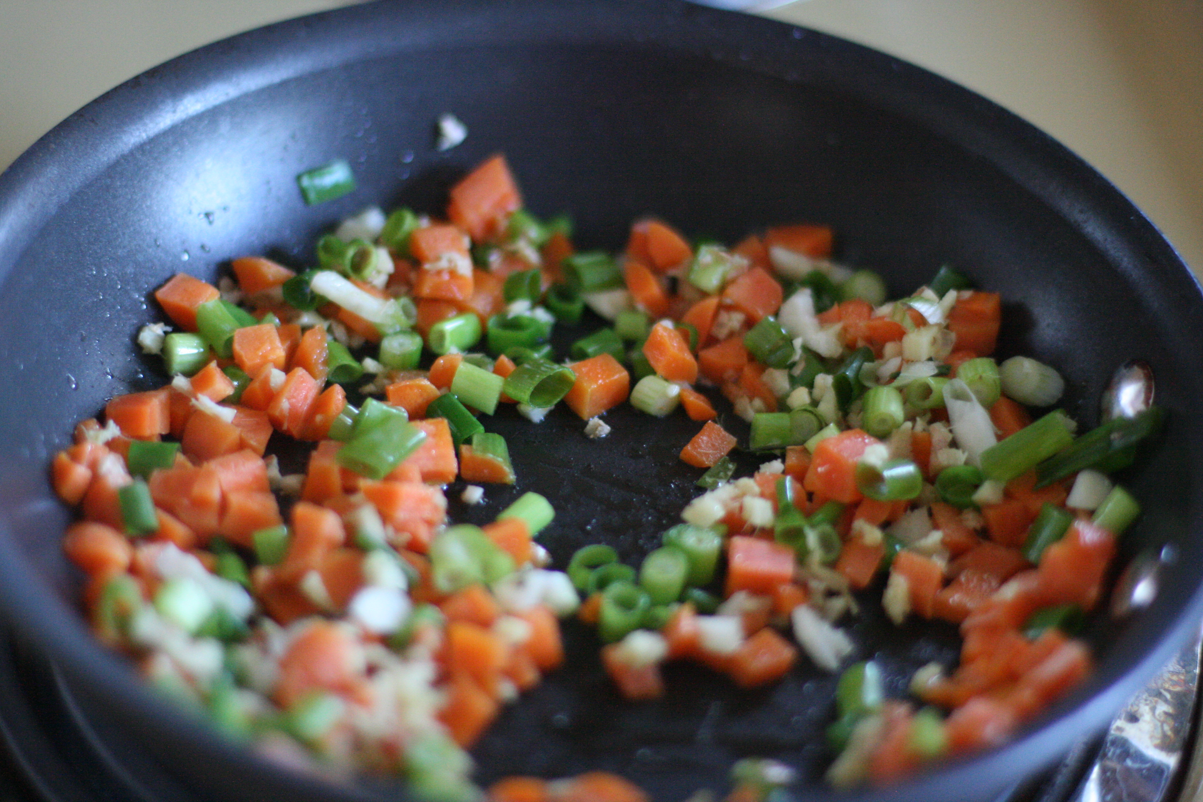 Leave the chicken with hubby to attend to and sauté some ginger, carrot, garlic, and green onions to mix with the rice.