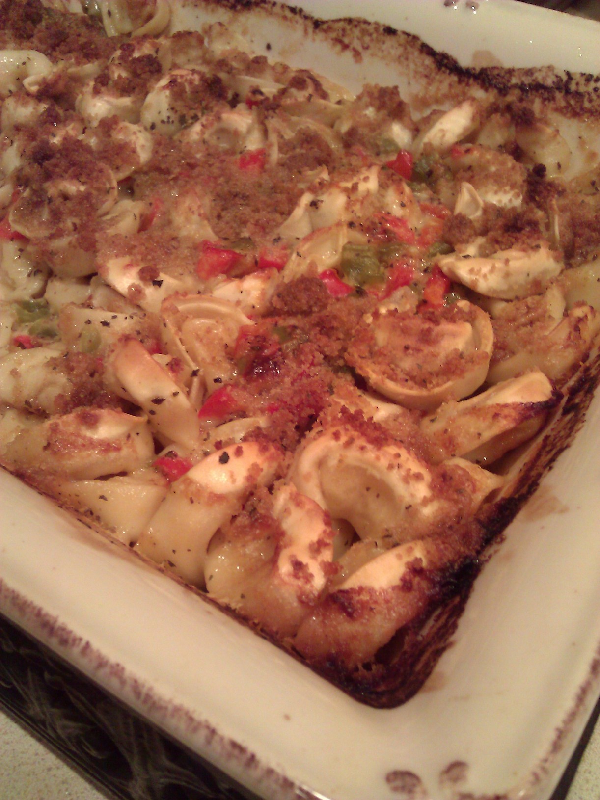 This sounded delicious, however once I went driving around looking for dried tortellini, I realized it was harder than I thought. So i opted for fresh tortellini in the end. Overall it was very tasty, but I thought it would be more saucy. I don’t know if it was the difference between the dried and fresh pasta, but it could have been. I may not make this again, only cause it was pretty rich and my stomach can’t take all that cheese so often.