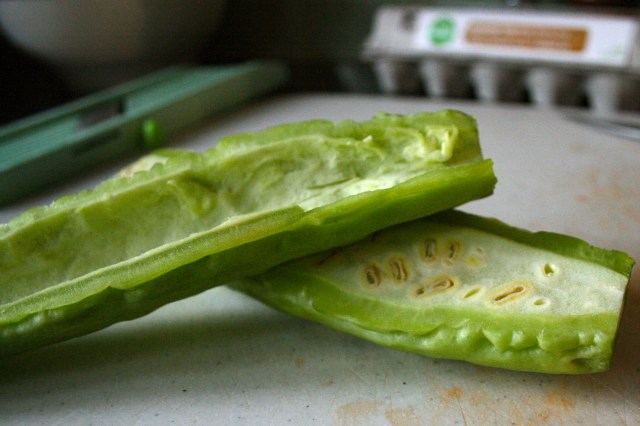 I took a bite. Holy Moly. BITTER Melon is right. I can say I’ve NEVER tasted anything quite like it… nor do I want to again. One bite was enough. I think it must be an acquired taste that I’m not going to put effort into acquiring.