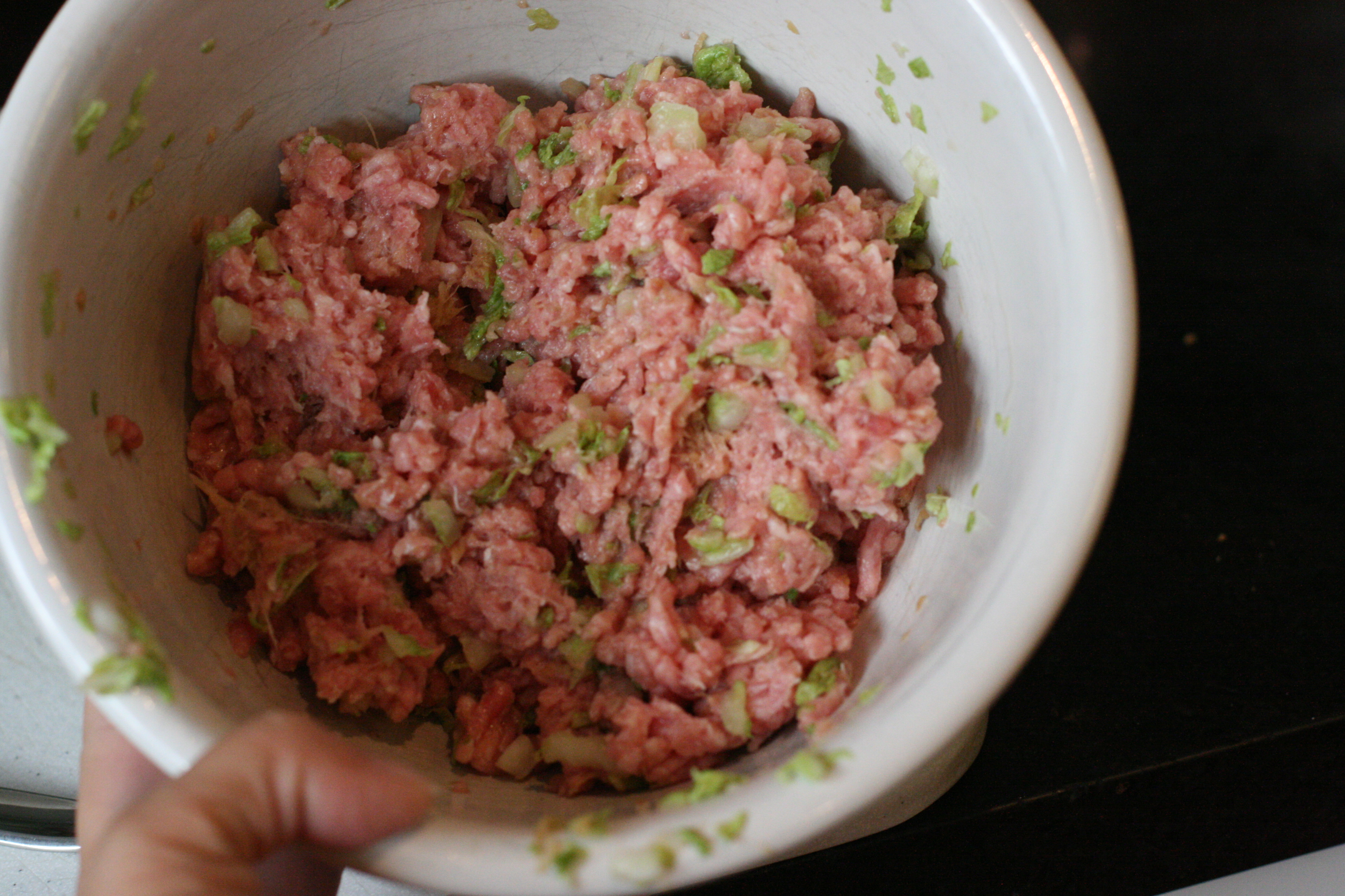 This rests while making the filling- pork, ginger, soy, sake, and cabbage-