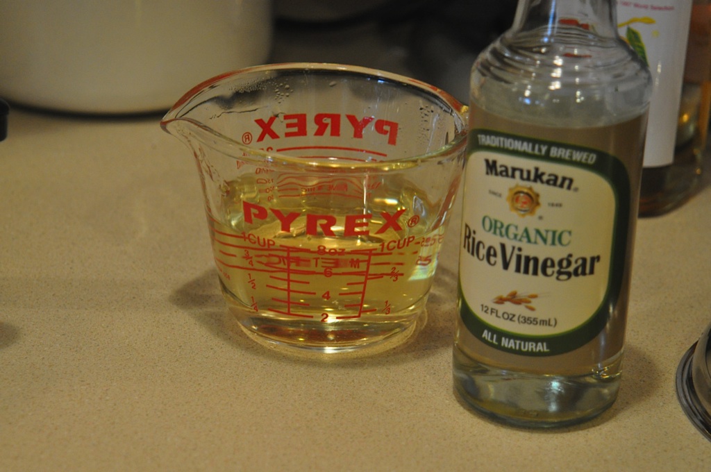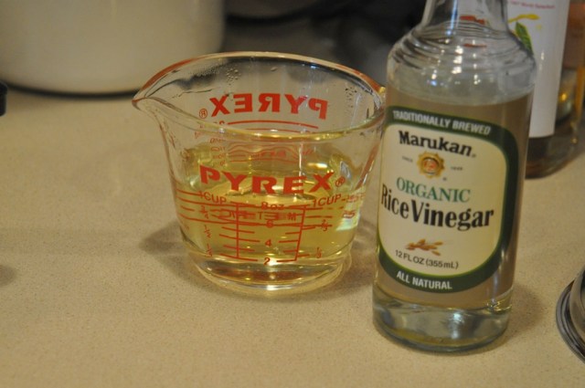 mixing the sugar and the rice wine vinegar