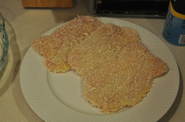 I started off making the Dashi on Sunday morning. The recipe called for one 6″ piece of Konbu and a “handful” of bonito flakes however I found that it didn’t make enough cups worth for the Katsudon recipe so I made two batches. Kind of a weird process but pretty easy to make. At first I was thinking what is this going to make? But once it started smelling it was familiar. Strain the bonito and refridgerate.