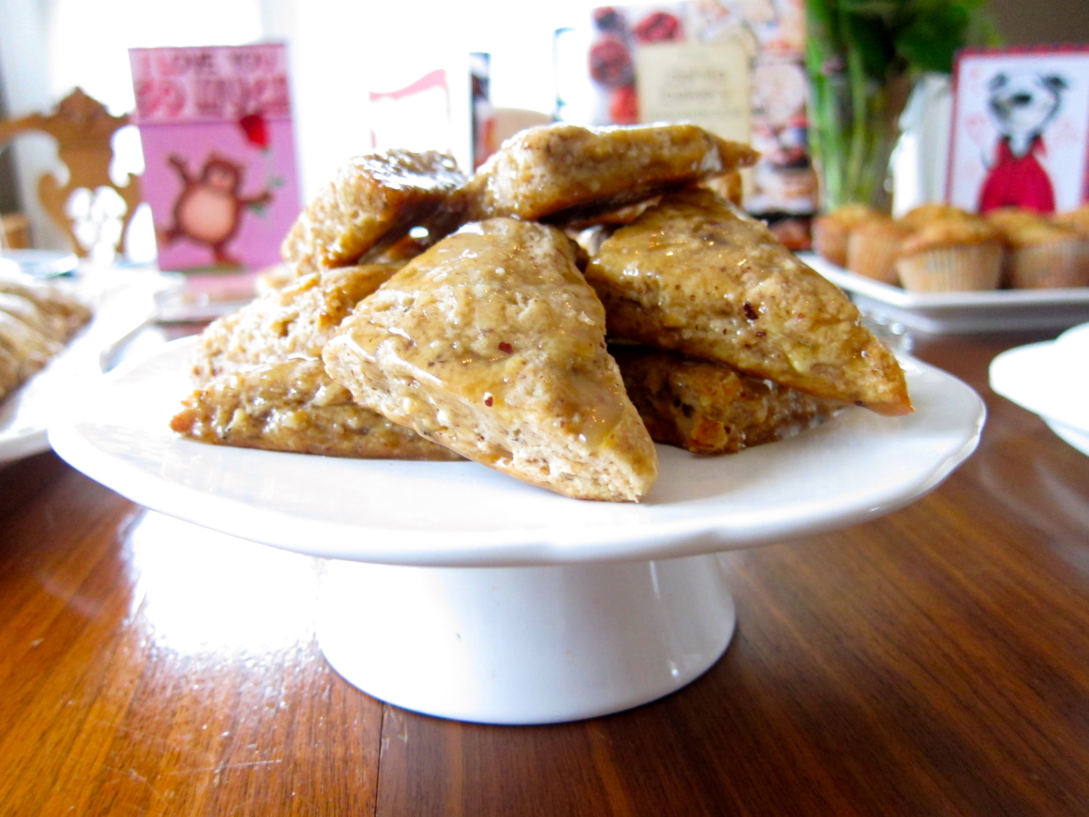 Meredith and I brought Toasted Hazelnut Whole Wheat Scones with Maple Glaze. Sadly, I don’t have a photo of Meredith’s. Hers looked completely different from my minis- and I think more successful- but you get the idea.