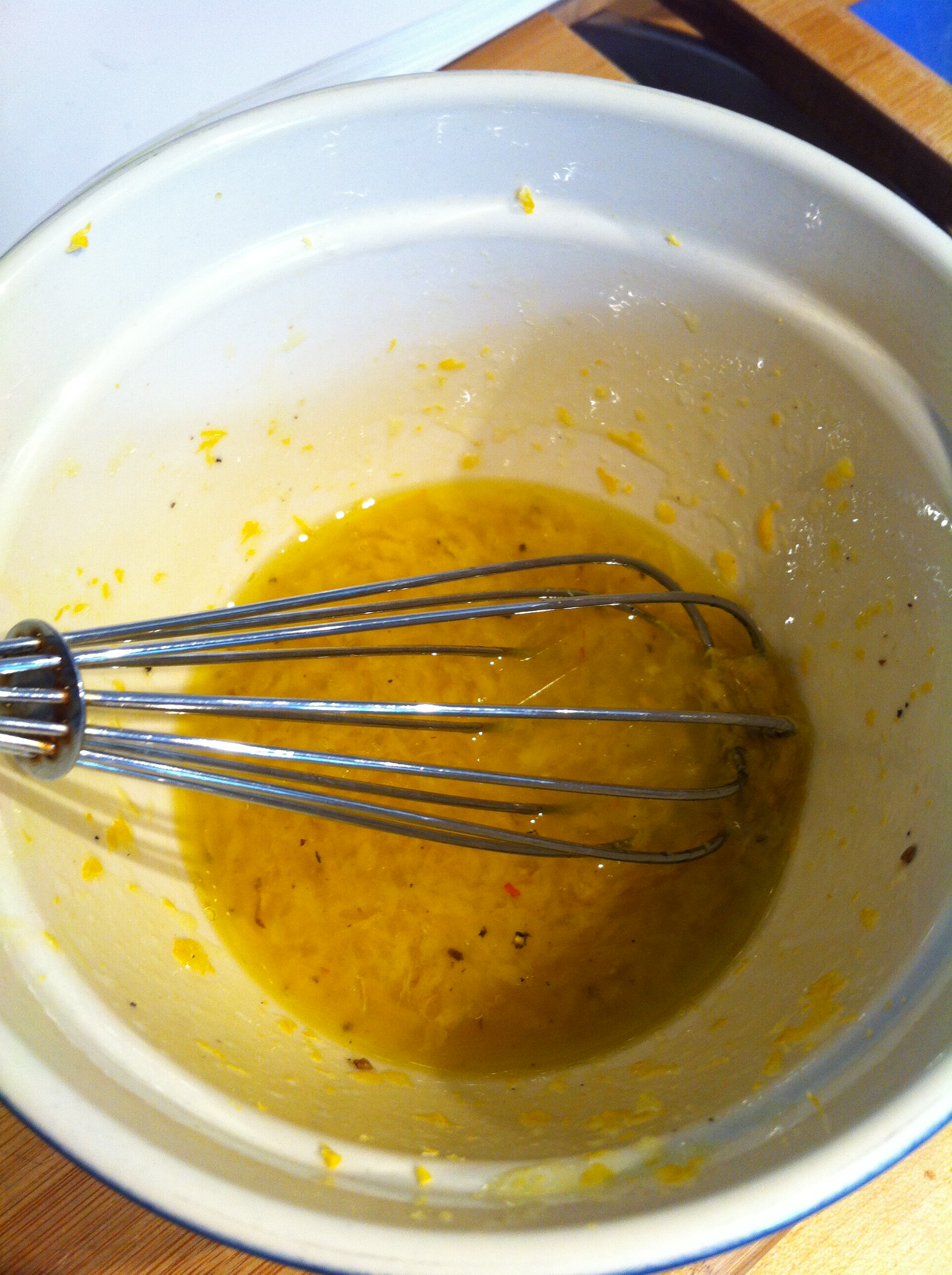 Whisk in fresh lemon juice, olive oil, salt & pepper.