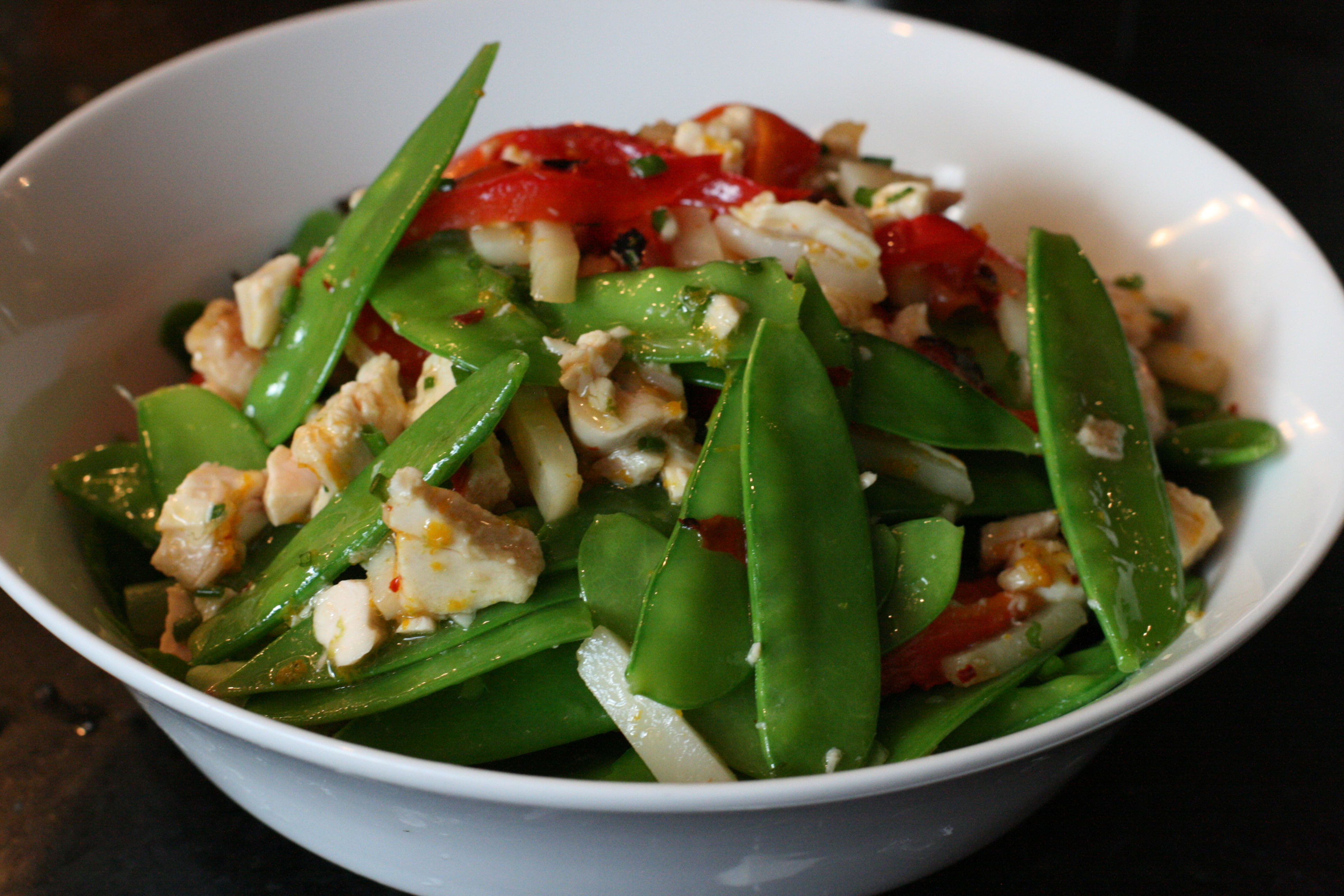 Roasted Chinese Chicken with Snow Peas and Water Chestnuts