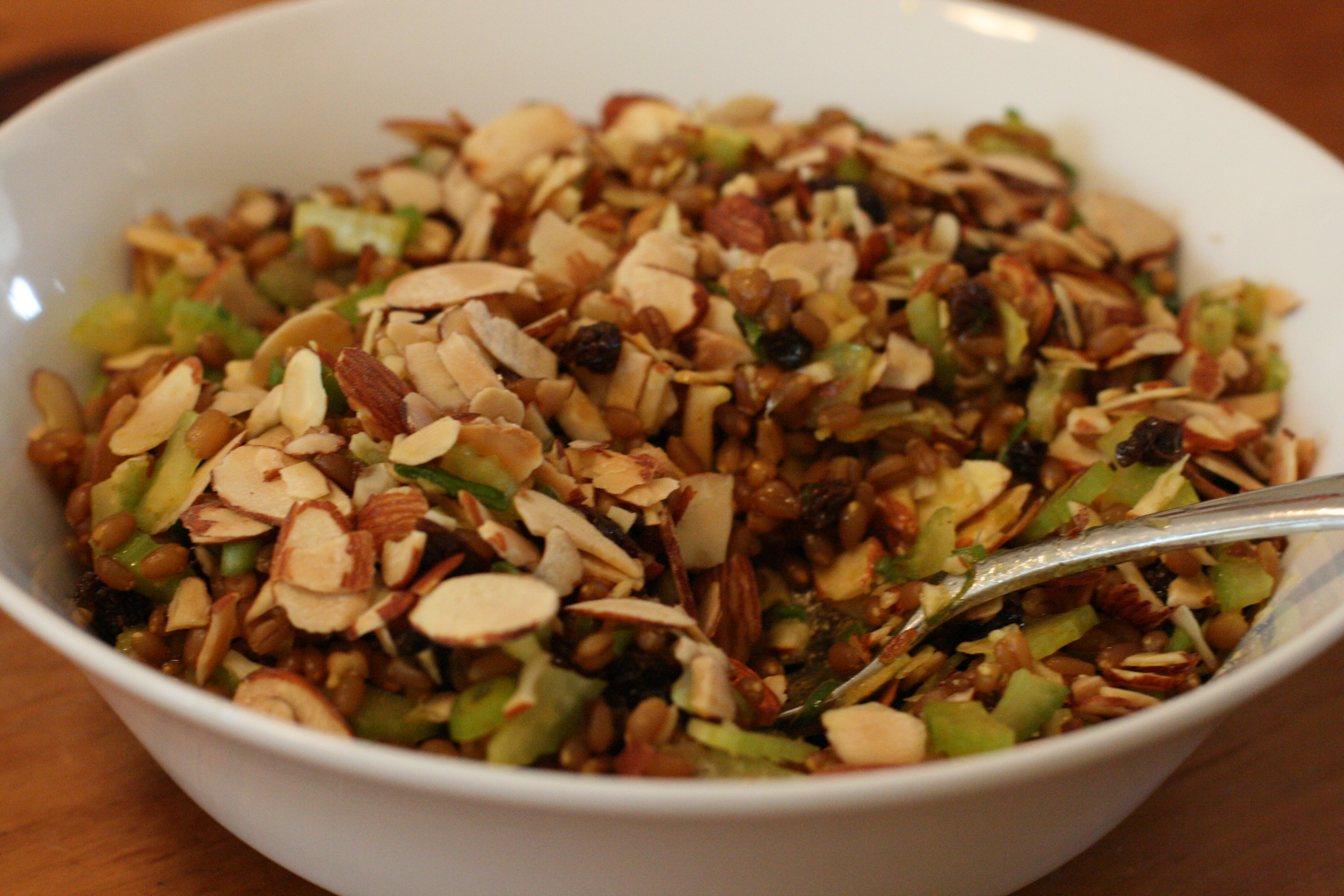 I brought the curried wheat berry salad with pistacios and coconut. (with almonds and no coconut)