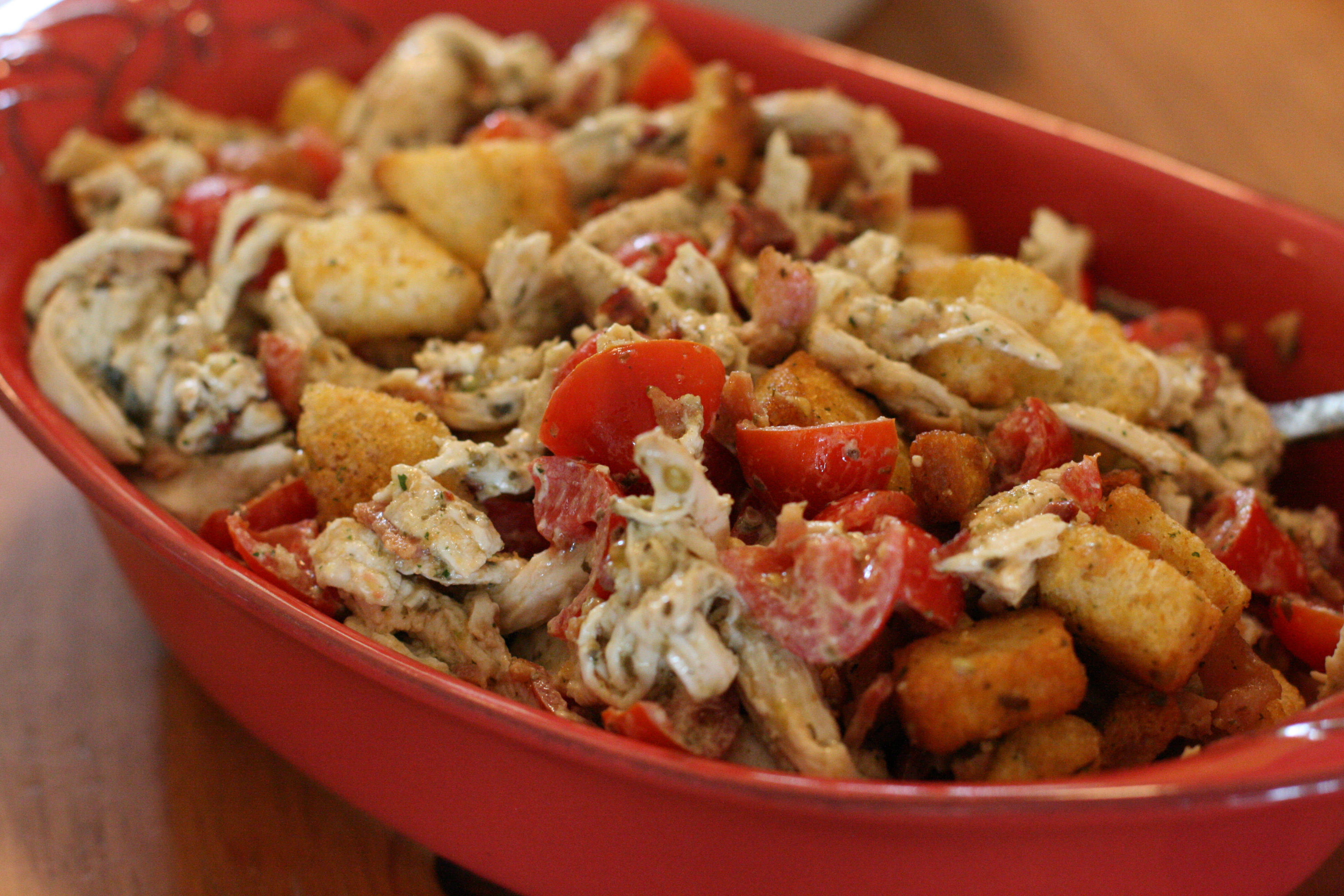 Bev and Devon both brought thePesto Chicken Salad with Bacon, Tomatoes, and Garlic Croutons- this one is Bev’s.