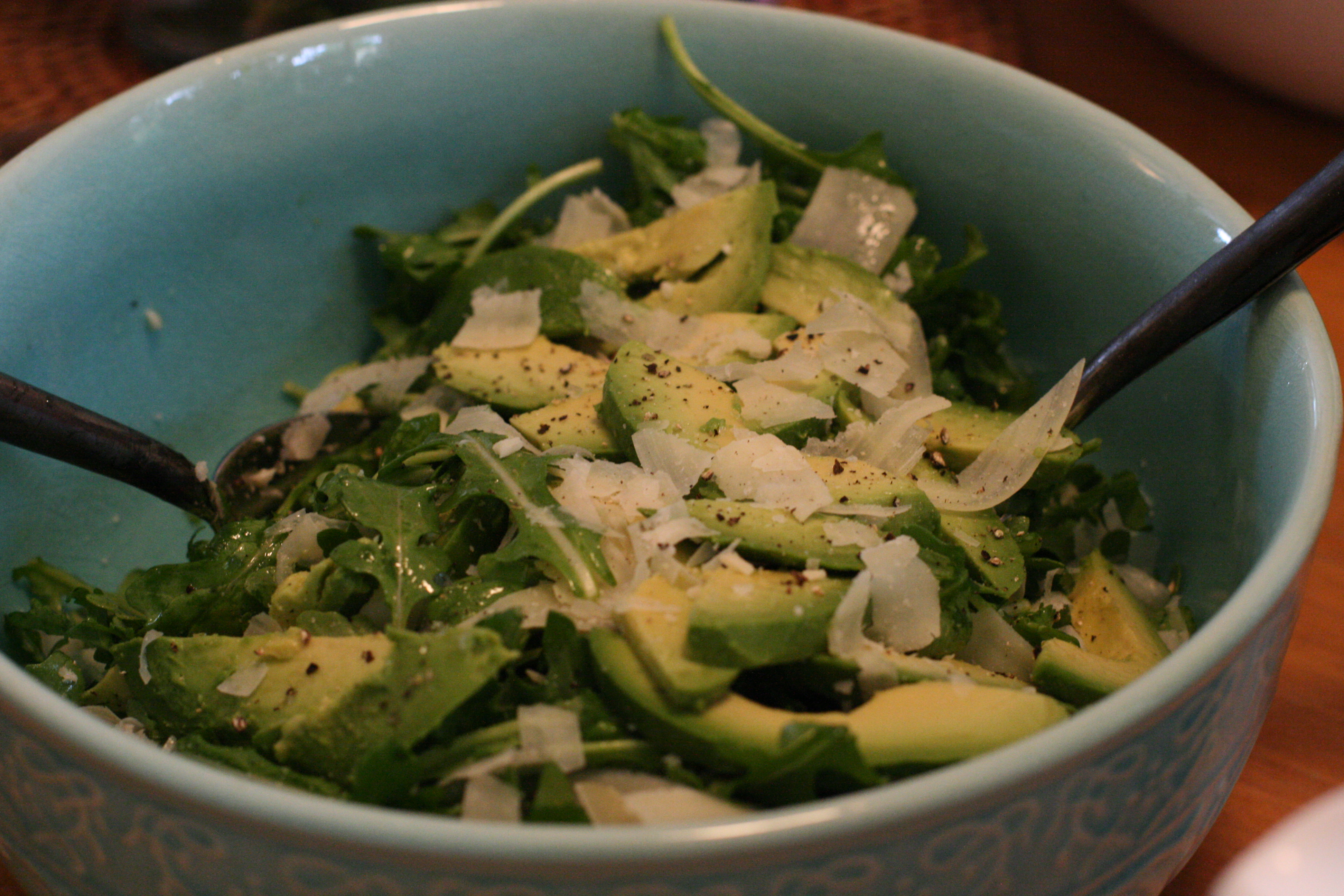 KT brought Arugula and Avocado Salad with Shaved Parmesan.