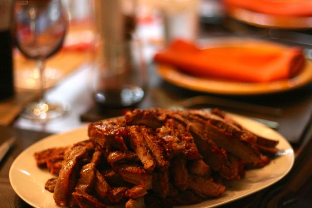 After the rested, the steaks were sliced thin… and served with pizza. Awesome.