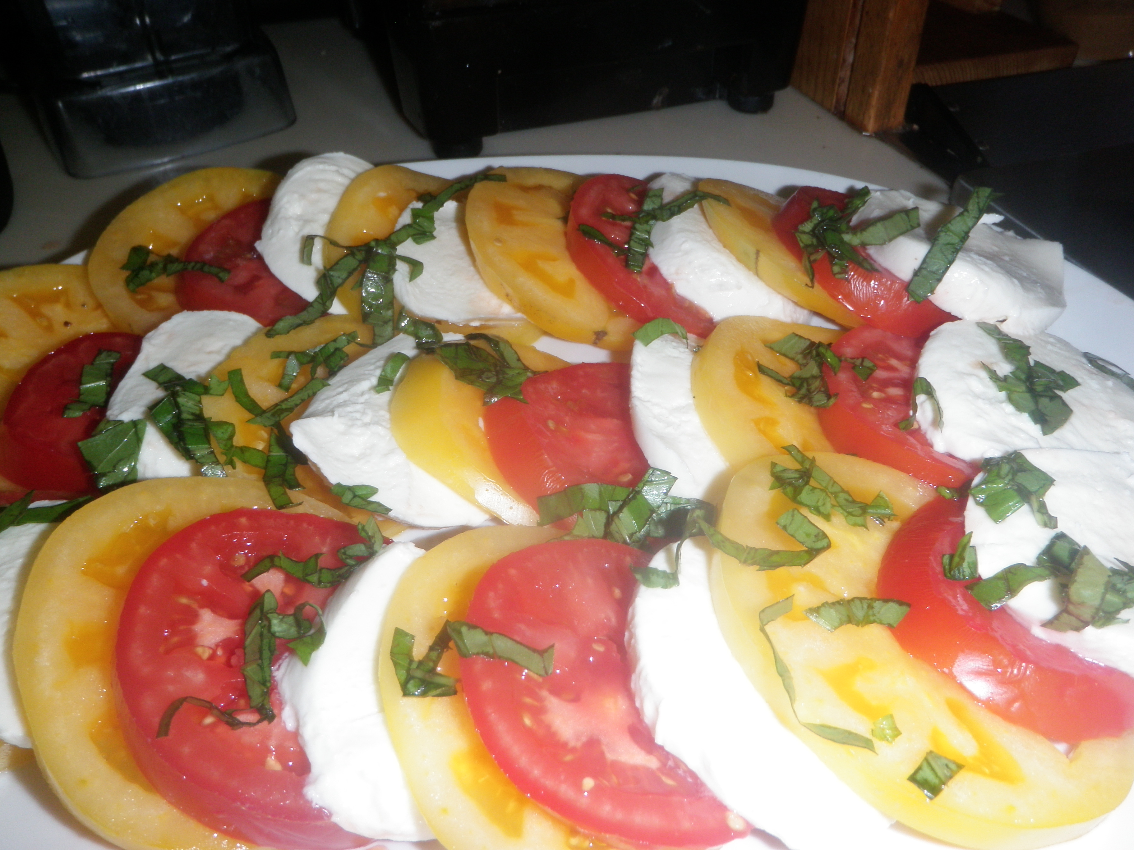 KT brought all of the fixings for the Fresh Buffalo Mozzarella with red and yellow tomatoes and basil vinaigrette.