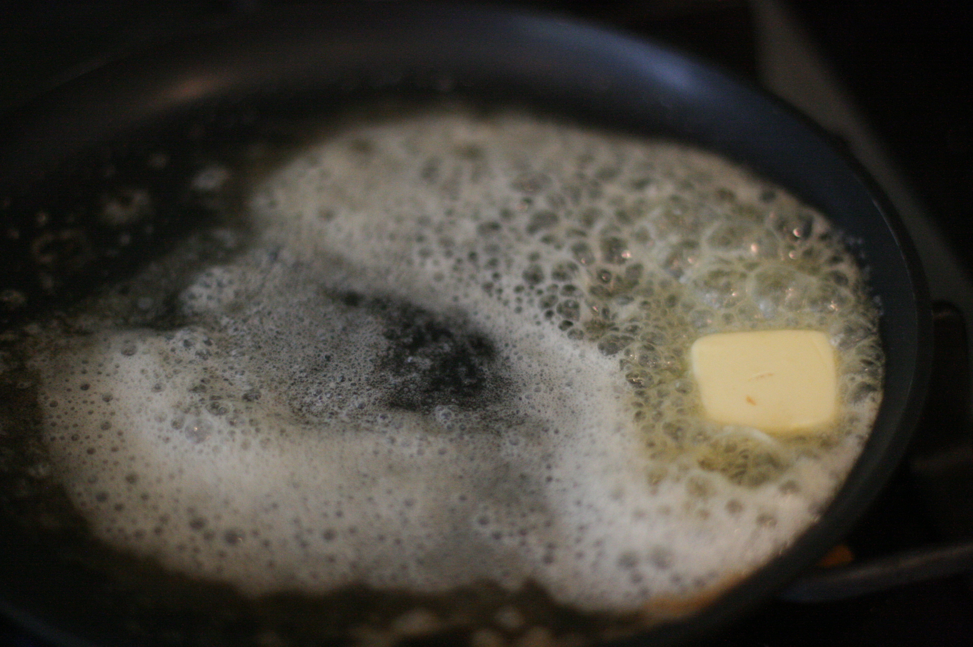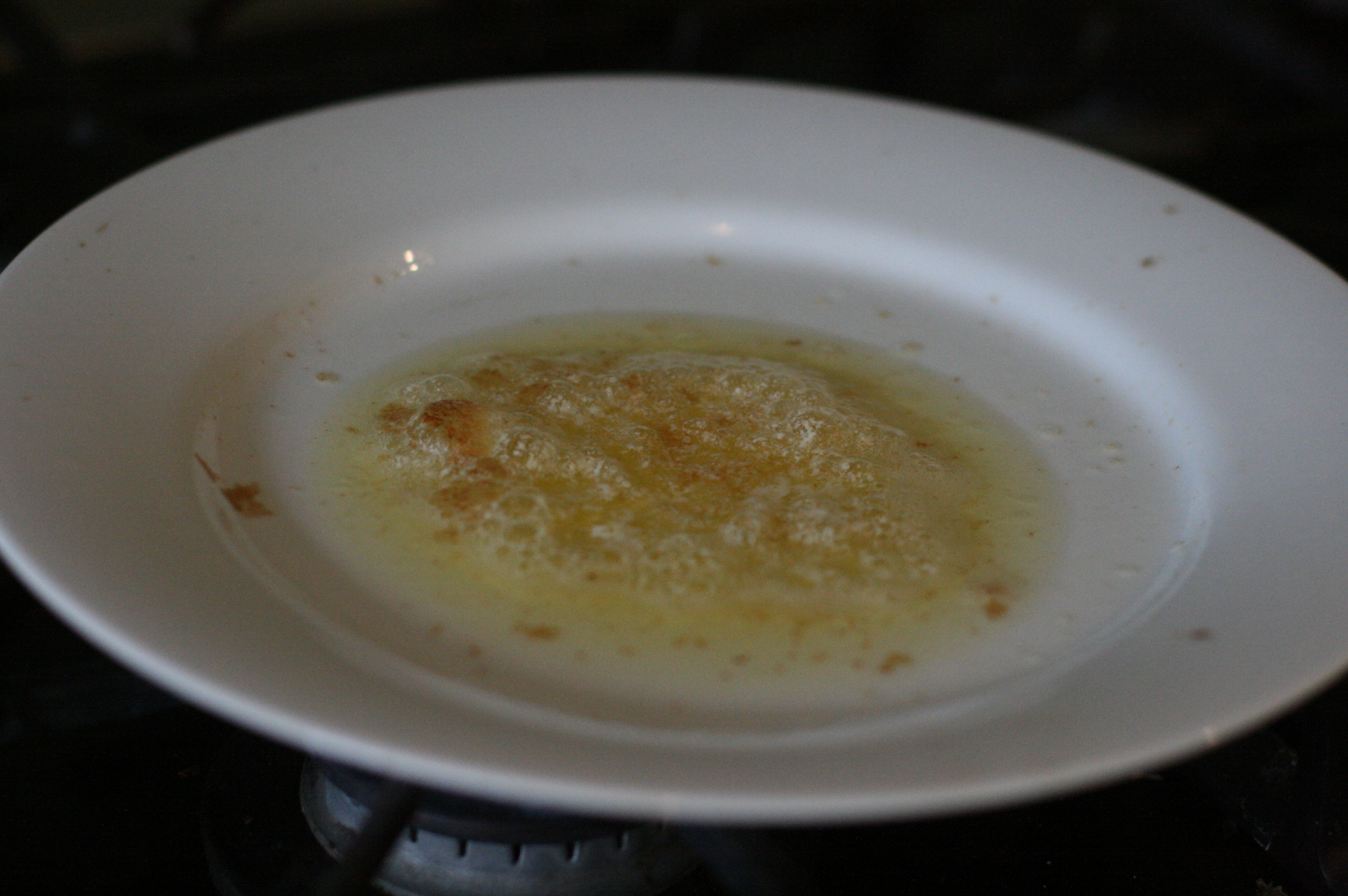 This time instead of using a pan, I preheated an oven-proof plate in the oven with the butter on it.