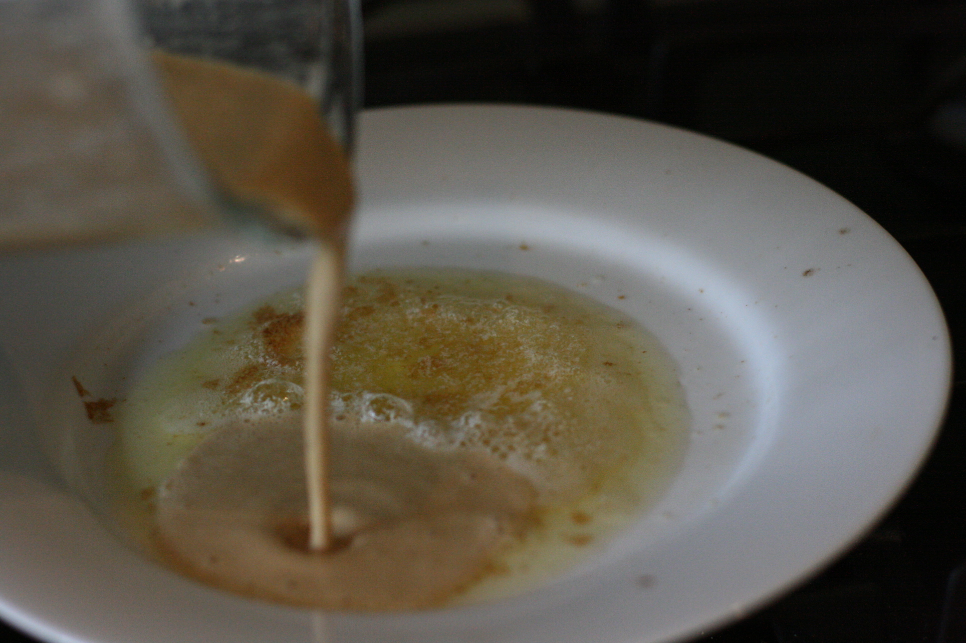 I poured the batter directly on the plate. That’s what I did with I usually make them- The plate is obviously hot out of the oven so not kid friendly, but for adults, you can pop another plate underneath and take it directly to the table. Keeps it nice and warm too.