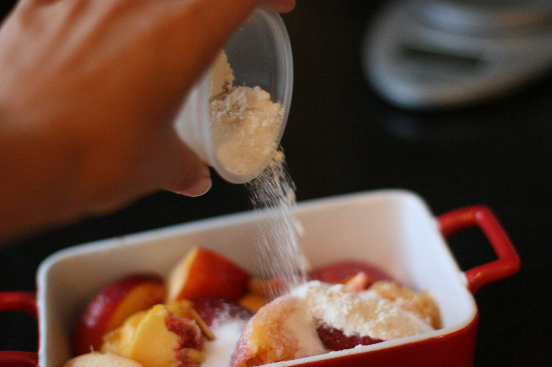 Just tear up a couple stone fruits- I actually used one peach and one apricot because that’s what I had.