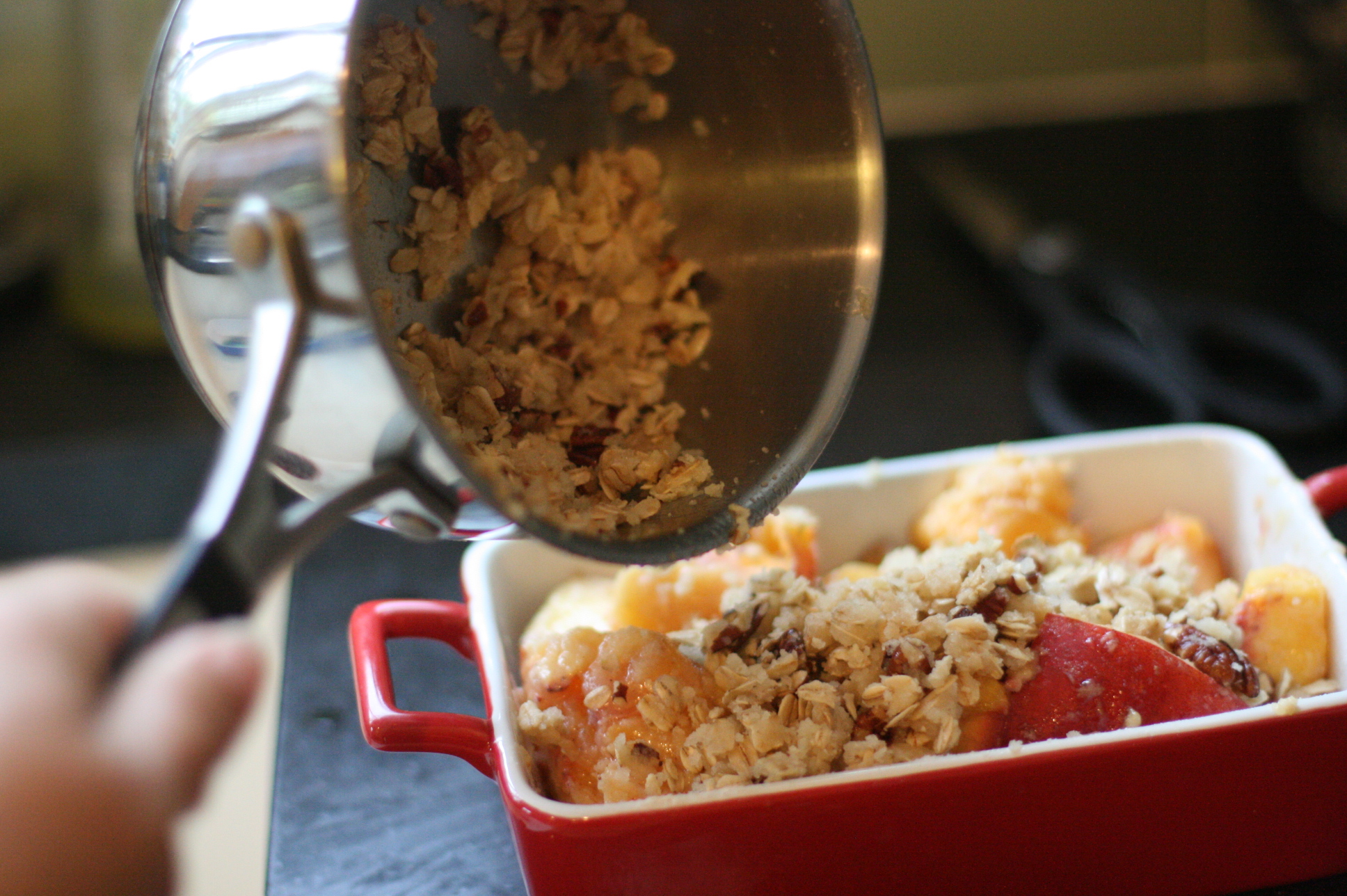 The best part is the fruit to crumble ratio. For me, crisps never have enough crisp- this is just right… will definitely make again. May be I’ll try apples next time since peach season seems to be behind us.