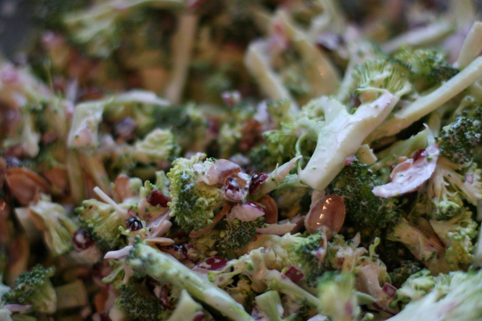 Broccoli Slaw is one of those things that I never make- that shows up at some sort of family shower and I think- why don’t I ever make that- and then I’m worried that I won’t like it if I make it myself, so I just wait for another baby to be born or for someone to get married so I can enjoy it again.